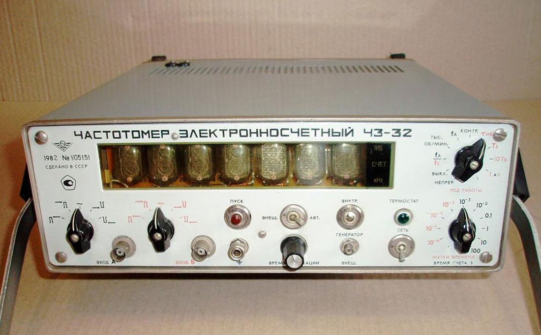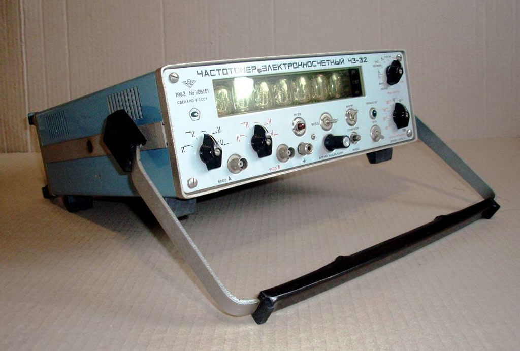 Частотомер электронносчётный *Ч3-32* выпускался с 1981 года Львовским заводом имени Ленина. Подробности в инструкции по эксплуатации.