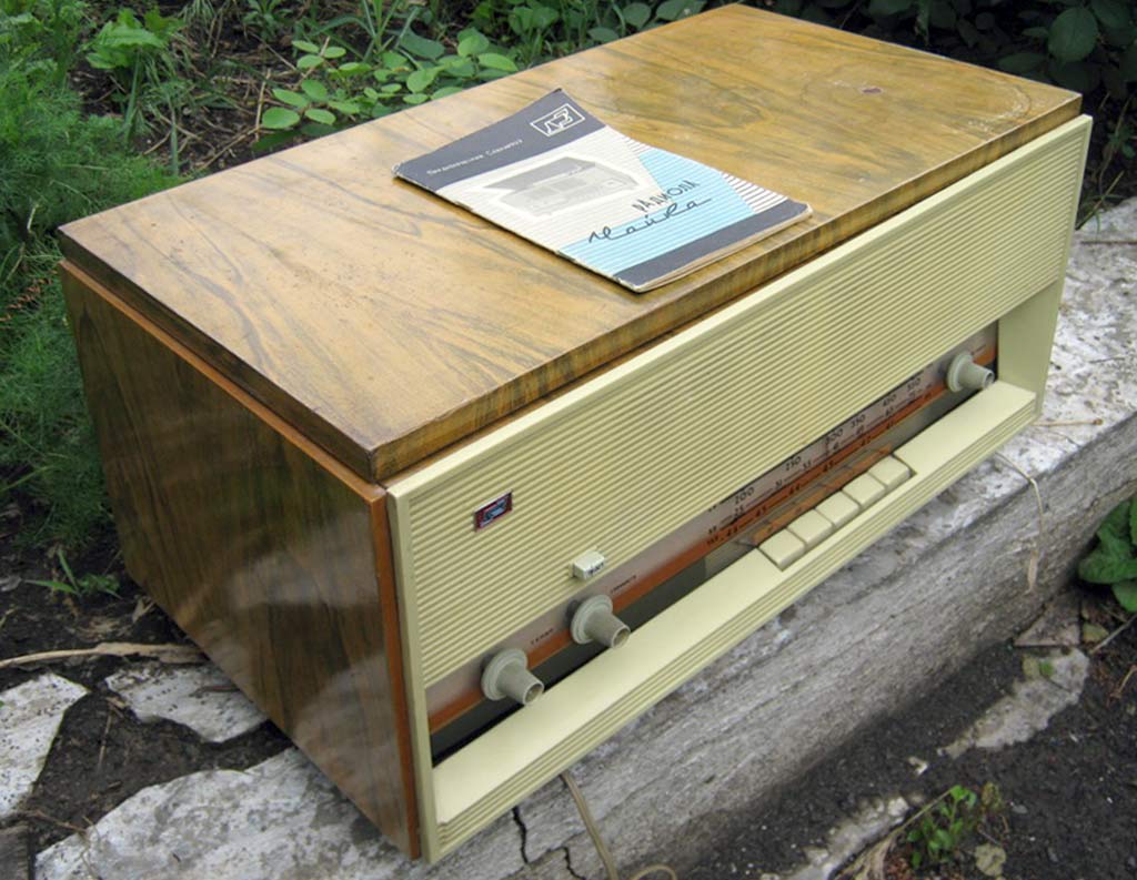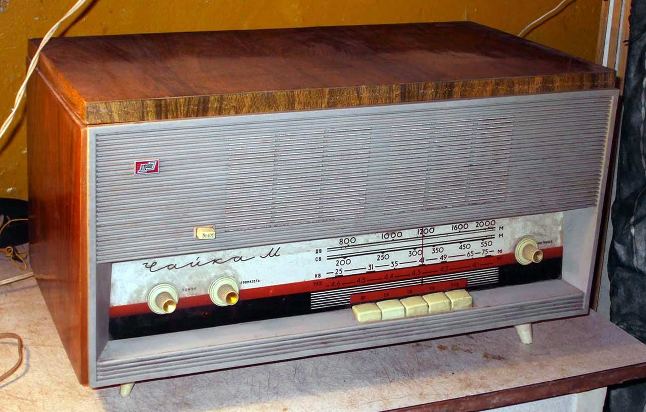 Радиола сетевая ламповая *Чайка-М** с начала 1965 года выпускалась Днепропетровским радиозаводом. Радиола 3-го класса *Чайка-М* - предназначена для приёма радиостанций в диапазонах ДВ, СВ, КВ, УКВ и для проигрывания грампластинок при скорости вращения диска 33, 45 и 78 об/мин. В радиоле применены лампы: 6НЗП, 6И1П, 6К4П, 6Н2П, 6П14П. ПЧ AM тракта 465 Кгц, ЧМ 6,5 Мгц. Чувствительность в диапазонах: ДВ, СВ 200 мкВ, KB 300 мкВ, УКВ 30 мкВ. Избирательность в диапазонах ДВ, СВ - 26 дБ. При приёме радиола воспроизводит полосу частот в диапазонах АМ 150...3500 Гц, в диапазоне УКВ и при проигрывании пластинок 150...7000 Гц. Питание от сети переменного тока 127 или 220 вольт. Потребляемая мощность при приёме 50 Вт, при проигрывании грампластинок 65 Вт. Цена модели 67 рублей 85 коп.