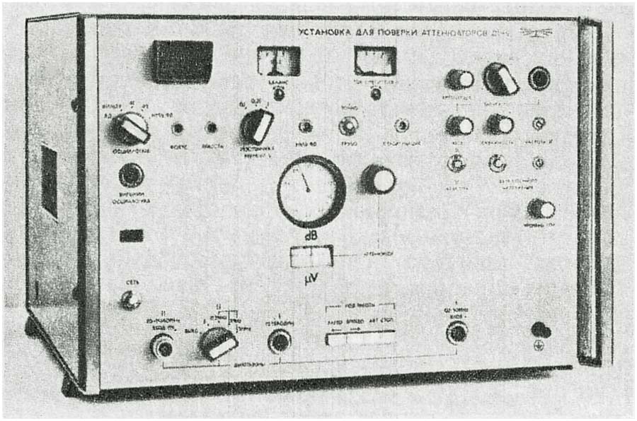 Установка для проверки аттенюаторов *Д1-9* выпускалась с 1973 года Горьковским заводом имени М.В.Фрунзе. Установка предназначена для налаживания и периодической поверки СВЧ приборов в лабораториях или ремонтных мастерских. Она позволяет измерять ослабления и калибровать отдельные аттенюаторы, пассивные СВЧ элементы и аттенюаторы, встроенные в генераторы сигналов, в диапазоне частот от 100 кГц до 17,44 ГГц. С помощью прибора *Д1-9* измеряют ослабление сигналов от 0 до 100 дБ на частотах до 1 ГГц и от 0 до 80 дБ на частотах выше 1 ГГц. Питание установки осуществляется от сети переменного тока частотой 50 Гц напряжением 220 В или частотой 400 Гц и напряжением 115 В. Потребляемая мощность135 ВА. Габариты прибора 320х480х475 мм. Вес 42,5 кг.