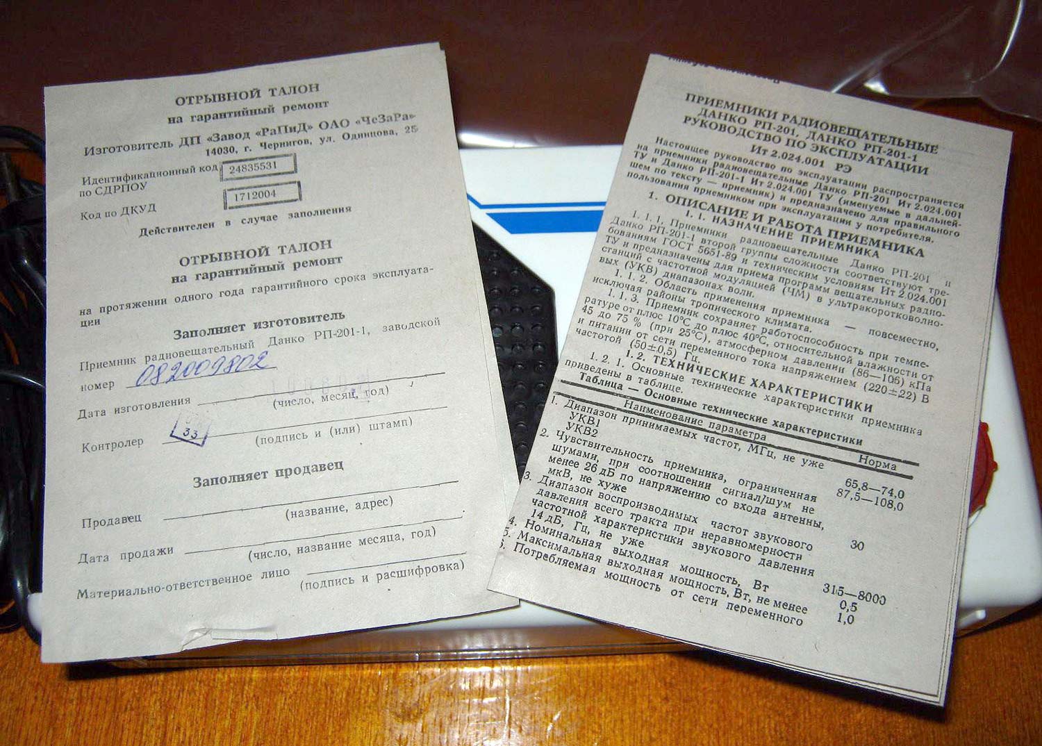 Стационарный транзисторный радиоприёмник *Данко РП-201* с 2000 года выпускал Черниговский завод радиоприборов. Радиоприёмник работает в диапазоне УКВ: 65,8...108 МГц, разбитом на 2 поддиапазона. Питание осуществляется от сети 220 В. Радиоприёмник **Данко РП-201** имеет 2 модификации, первая имеет настройку на шесть фиксированных радиостанций в любом поддиапазоне, которые переключаются с помощью кнопки. Второй приёмник *Данко РП-201-1* имеет плавную настройку в обоих диапазонах. Чувствительность любой модели 30 мкВ. Диапазон воспроизводимых частот - 315...8000 Гц. Коэффициент гармоник 5%. Максимальная выходная мощность 1 Вт. Потребляемая от сети мощность 10 Вт. Габариты любого радиоприёмника 238х126х77 мм. Масса радиоприёмника *Данко РП-201* - 1,1 кг, *Данко РП-201-1* - 0,87 кг.