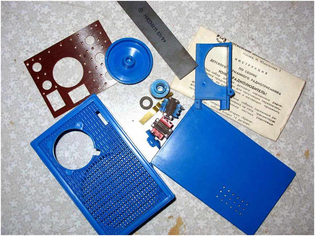 -Радиоконструктор *Радиоприёмники из набора деталей* с начала 1964 года выпускал Московский школьный завод *Чайка*. Радиоконструктор выпускался в виде набора с корпусом и минимумом радиодеталей и узлов, в виде набора с корпусом со средним набором радиодеталей и узлов, полностью комплектный набор, позволяющий без затрат собрать действующий радиоприёмник и в виде корпуса, с радиодеталями и узлами из которого можно было собрать одну из нескольких радиосхем радиоприёмника. Менялось оформление корпусов. Например такое как показано в заставке было и в других наборах. На сайте приведено несколько наборов завода *Чайка*, но описанный был одним из первых.