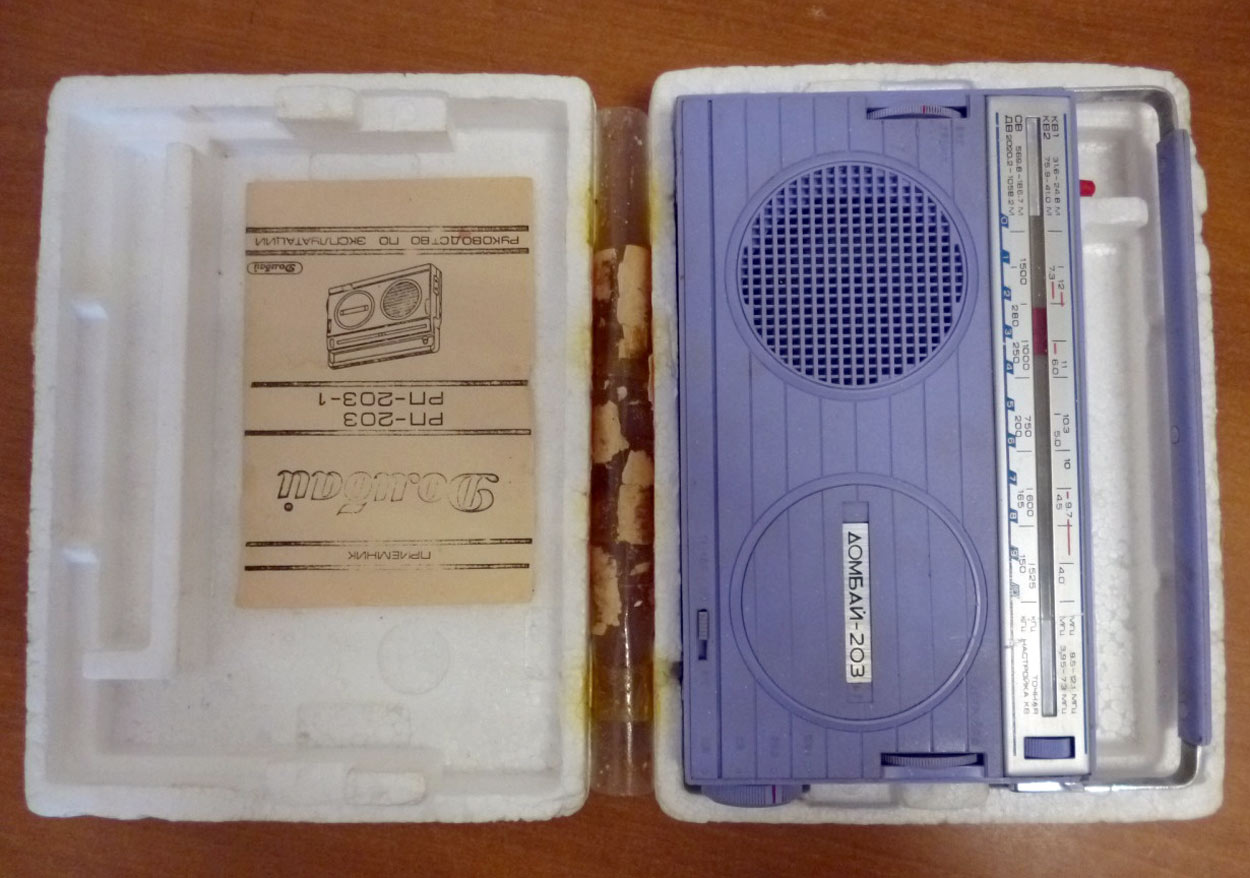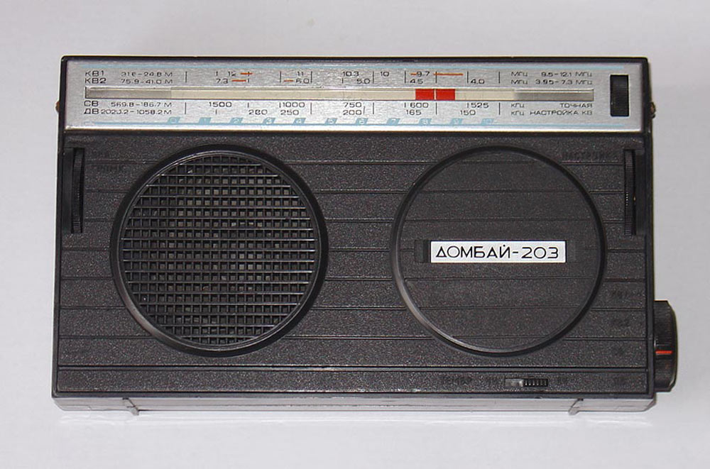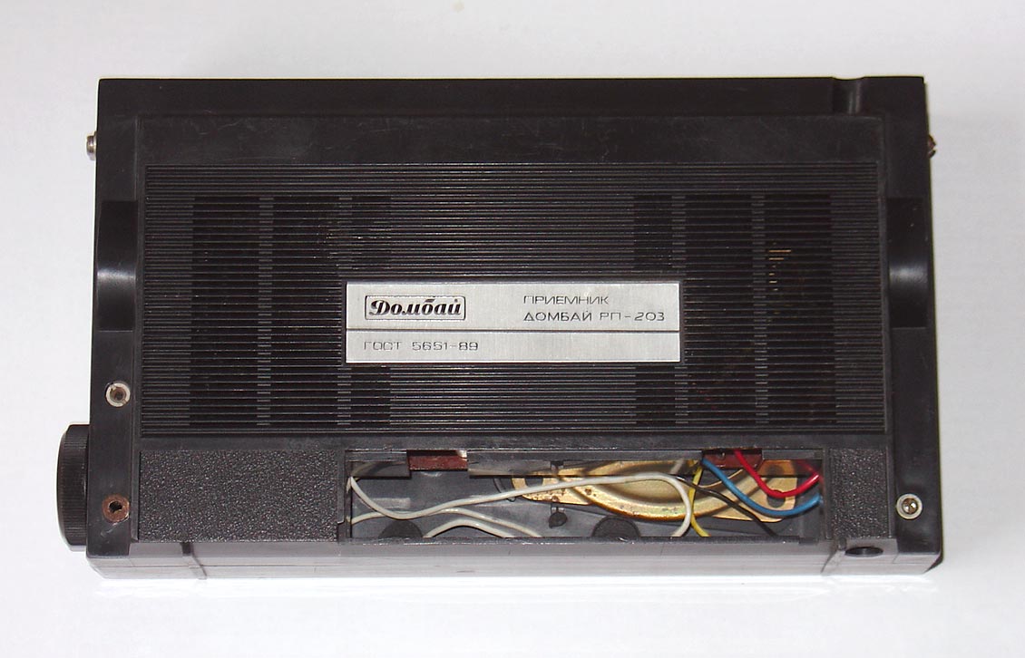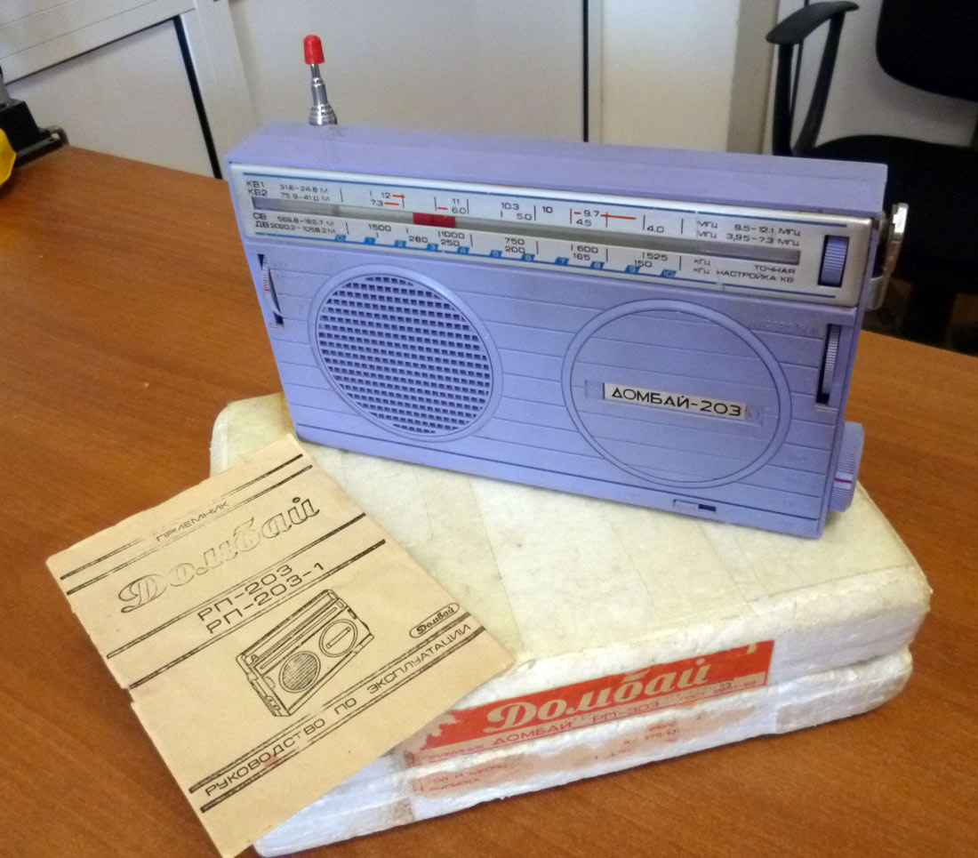 Портативный радиоприёмник *Домбай-303* с 1982 года выпускал Черкесский радиозавод *Полет*. Приёмник выпускался на основе модели **Россия-303**. Первые приёмники не отличались от базового, затем было изменено их оформление и применена более современная элементная база. Приёмник рассчитан на приём в диапазонах ДВ, СВ и двух поддиапазонах КВ. Имеется ступенчатая регулировка тембра ВЧ, точная подстройка частоты в поддиапазонах КВ. Работает приёмник на громкоговоритель 0,5ГД-30. Питание от четырёх элементов А-316. Чувствительность в диапазонах ДВ - 2,1мВ/м, СВ - 1,2 мВм, поддиапазонах КВ - 450 мкВ. Избирательность по соседнему каналу 36 дБ. Номинальная выходная мощность 0,2 Вт. Диапазон воспроизводимых частот 250...3550 Гц. Габариты приёмника 215х195х65 мм. Масса 1,5 кг. С 1985 года завод выпускал радиоприёмник **Домбай-303-1**. С 1986 года приёмник *Домбай-203* (*Домбай РП-203*), а с 1987 года *Домбай РП-203-1*. Новые модели не отличались друг от друга по конструкции и схеме, а вот оформление было самым разным, в том числе и в цветовой гамме. С 1986 года в наименовании радиоприёмников добавились буквы РП, *Домбай РП-203* и *Домбай РП-203-1*, что было связано с новым ГОСТом. Статья на сайте Li-ne.ru Домбай РП-203Россия-303 (выпуска 1974г)Россия-303 (выпуска 1985г)Россия-303 (выпуска 1987г)
