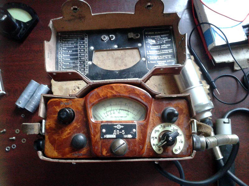 Полевой радиометр-рентгенметр *ДП-5* (ПРР-1) выпускался предположительно с 1963 года. Предназначен для обнаружения и количественного определения бета-заражённости поверхности различных предметов, а также для обнаружения и измерения уровней гамма-радиации. Прибор имеет семь поддиапазонов измерений: 1-й поддиапазон от 5 до 200 Р/ч. 2-й от 0,5 до 5 Р/ч. 3-й от 0,05 до 0,5 Р/ч. 4-й от 100000 до 1000000 расп/мин. см2. 5-й от 10000 до 100000 расп/мин. см2. 6-й от 1000 до 10000 расп/мин. см2. 7-й от 100 до 1000 расп/мин. см2. В интернете прибор описан во всех подробностях. Фотографии прибора с сайта: http://forum.rhbz.org/