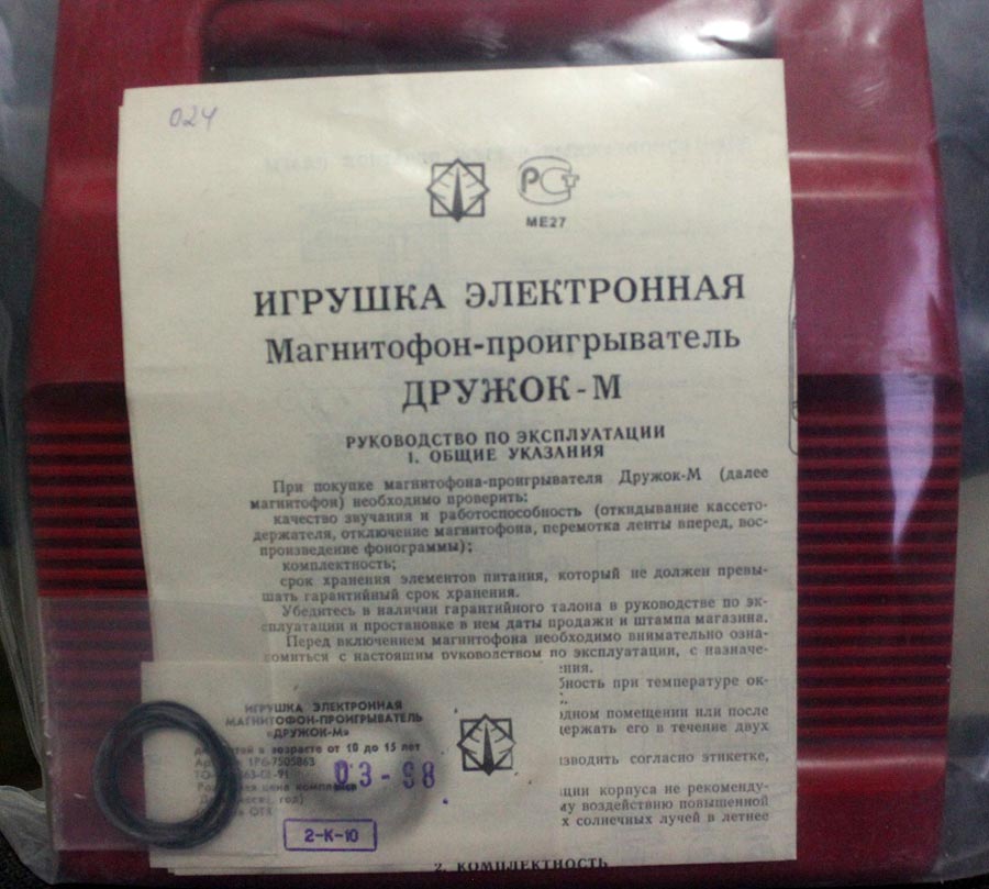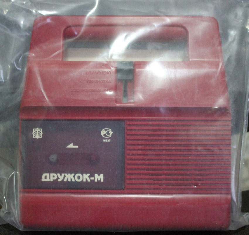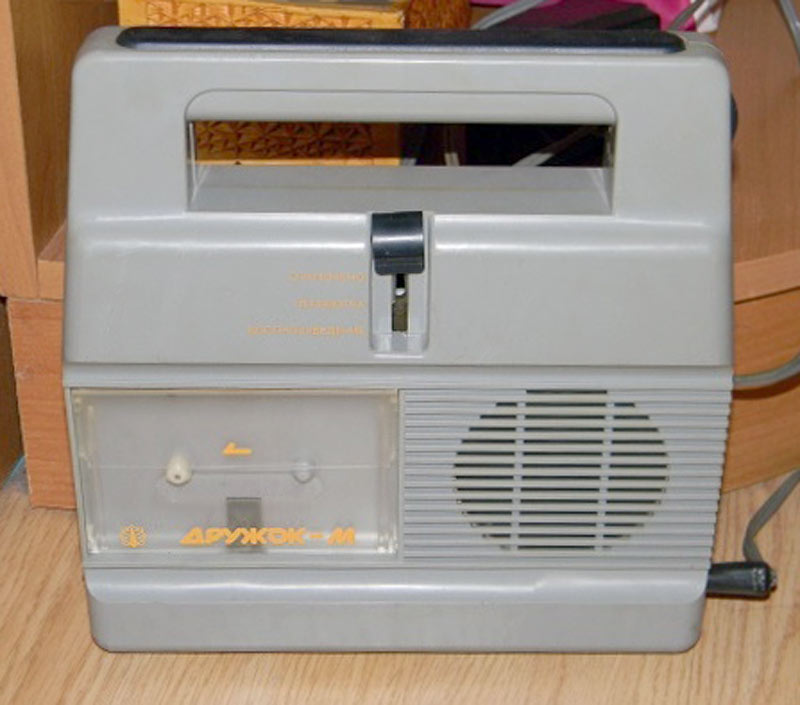 Детский магнитофон-игрушка *Дружок* с начала 1988 года выпускал Каменск-Уральский ПСЗ. Предназначен для приобретения детьми школьного возраста навыков обращения с бытовой аппаратурой, развития музыкальных способностей и технических познаний. Позволяет воспроизводить фонограммы, записанные на компакт кассетах МК-60. В магнитофоне имеется 4 положения переключателя рода работ: воспроизведение, перемотка вперед, стоп и выключение, а так же откидывание крышки и выброс кассеты. Аппарат работает от сети через внешний БП или от 6 батарей 343. Номинальная выходная мощность 1 Вт. Диапазон частот 200...7000 Гц. Продолжительность работы от батарей около 10 часов. Габариты модели 230х225х60 мм. Вес с батареями 1,5 кг. Цена 60 рублей. Корпус из ударопрочного цветного полистирола. С 1995 года завод выпускал магнитофон-игрушку *Дружок-М* впрочем, по схеме, конструкции и оформлению ничем не отличавшийся от описанного.