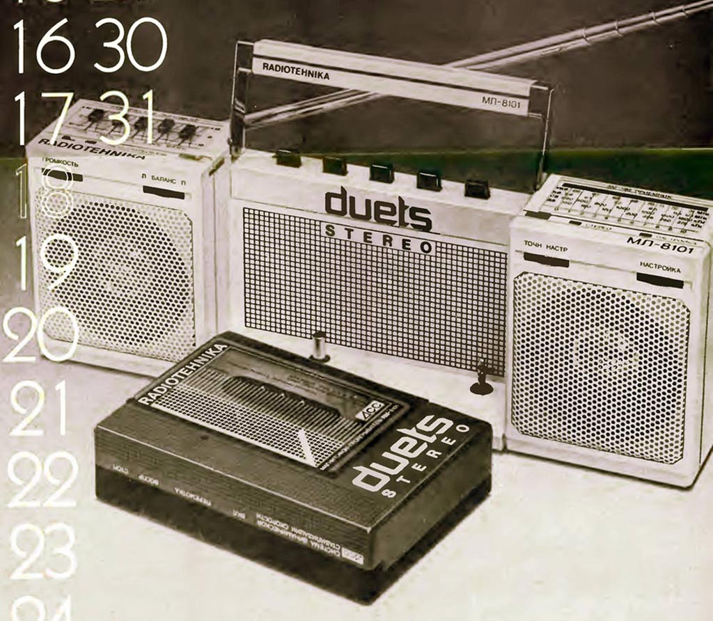 Малогабаритная магнитола *Дуэт-стерео МЛ-8101* с 1986 года планировалась к выпусу Рижским радиозаводом имени Попова. Магнитола состоит из всеволнового радиоприёмника, мощных усилителей звуковой частоты с эквалайзером, двух громкоговорителей с питанием от батарей или от электросети, через встроенный блок питания, объединённых в общем корпусе куда в середину в разъём вставлялся плейер *Дуэт-стерео ПМ-8101* образуя при этом магнитолу, но без функции записи. Номинальная выходная мощность магнитолы 2х2 Вт. Диапазон частот по звуковому давлению 100...10000 Гц. Другой информации нет. В серию магнитола не пошла.