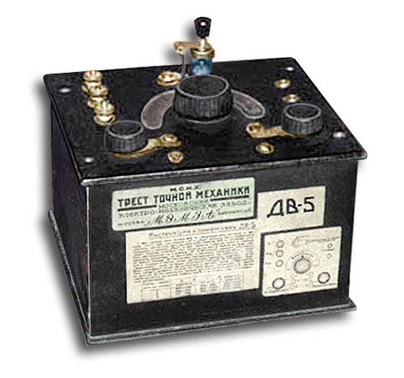 Радиоприёмник детекторный **ДВ-5** (Детекторный, Вещательный, 5-я модель) с 1929 года выпускал Московский ЭМЗ. Приёмник пришёл на смену модели *ДВ-4*. Основное отличие от приёмника *ДВ-4*, это жёсткое крепление детектора, сначала на верхней панели, а позднее и внутри футляра. Радиоприёмник *ДВ-5* работает в диапазоне 300...2000 метров. Грубая перестройка на частоту осуществляется переключением витков а плавная вариометром. Отдельный переключатель регулирует связь с антенной. В радиоприёмнике применён детектор ДС-4. Рекомендуемая антенна - это диполь или длинный провод от 40 м. Выход аппарата нагружен высокоомными телефонами. Радиоприёмник **ДВ-5** оформлен в крашенном деревяном футляре, с наклеенной сбоку инструкцией.