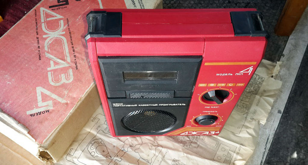 Игрушку-магнитофон *Джаз-4* с 1986 года выпускал Саратовский завод точной механики. **Джаз** (ПКП-4 - Проигрыватель Кассетный Портативный 4-я модель) предназначен для проигрывания фонограм записанных на кассетах типа МК-60 с целью организации досуга детей, развития у них музыкальных способностей и навыков обращения со сложной бытовой техникой. Модель имеет показатели на уровне магнитофонов 3-го класса. Диапазон воспроизводимых частот на линейном выходе 100...10000 Гц, по звуковому давлению 150...8000 Гц. Номинальная выходная мощность 0,5 Вт. Питание от 6-ти батарей А-343 или от сети через выносной БП. Габариты аппарата 260х173х72 мм. Масса с батареями и кассетой 2,1 кг.