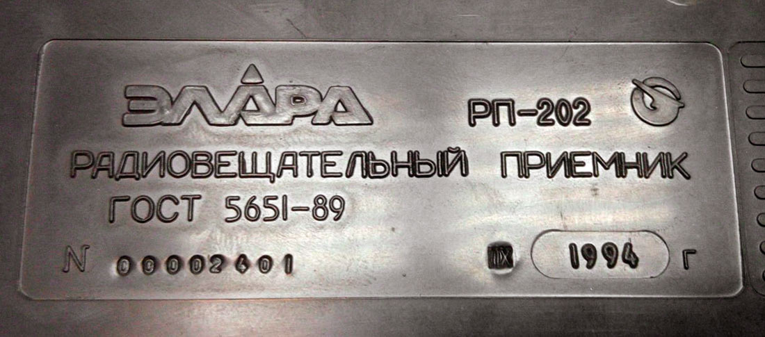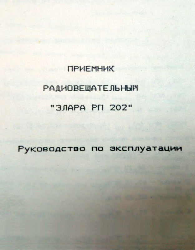 Приёмник радиовещательный *Элара РП-202* выпускался с 1994 года Чебоксарской фирмой *Элара-ТНП* (Чувашская республика). Приёмник работает в диапазонах КВ-1 - 19 метров, КВ-2 - 25 метров, УКВ-1 - 64...75 МГц, УКВ-2 - 98...112 МГц, а так же принимает звуковое сопровождение в низкочастотном телевизионном диапазоне с 1 по 5 канал. Питается приёмник от 6-ти батарей типа *А-343* или от сети переменного тока через выносной блок питания. Управление диапазонами - кнопочное. Номинальная выходная мощность 0,5 Вт, максимальная 1,2 Вт. Диапазон частот, воспроизводимых при приёме в диапазонах УКВ и в телевизионном диапазоне - 150...5000 Гц. Другой информации пока нет.