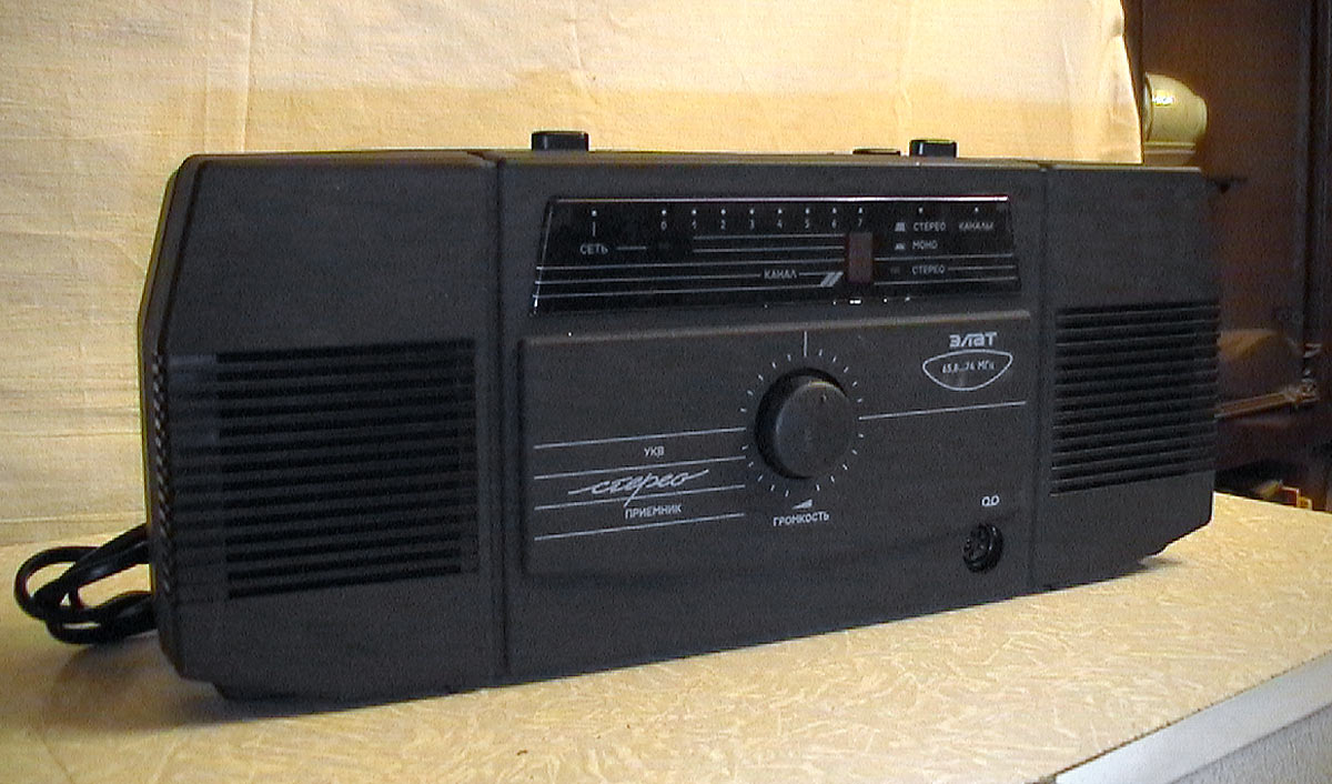 Стационарный транзисторный радиоприёмник *Элат-РП-202-стерео* с начала 1997 года выпускало АО Обнинский приборный завод *Сигнал*. Стереофонический радиоприёмник **Элат РП-202-С** предназначен для приёма УКВ-ЧМ радиостанций, в основном местного радиовещания по 8 каналам фиксированной настройки. В нём имеется и возможность прослушивания передач местного проводного вещания. Простота пользования радиоприёмником достигается отказом от традиционного шкального устройства. Смена радиостанций осуществляется блоком электронного управления при последовательном нажатии кнопки **каналы**. Цифровой индикатор высвечивает номер выбранного канала. При близком расположении радиостанций приём может осуществляться на отрезок провода, что позволяет пользоваться радиоприёмником в разнообразных условиях. Технические характеристики: Диапазон частот 66...74 МГц. Чувствительность с внешней антенны: в стереорежиме 50 мкВ, в монорежиме 6 мкВ. Разделение стераоканалов по выходу на частоте 1000 Гц, не менее 30 дБ. Диапазон воспроизводимых частот по электрическому напряжению - 100...10000 Гц. Напряжение трансляционной сети 10...30 В. Номинальная выходная мощность - 2х0,5 Вт. Максимальная - 2х2,5 Вт. Потребляемая мощность при номинальной выходной мощности 9 ВА. Габариты РП - 166х304х94 мм. Вес - 1,65 кг.
