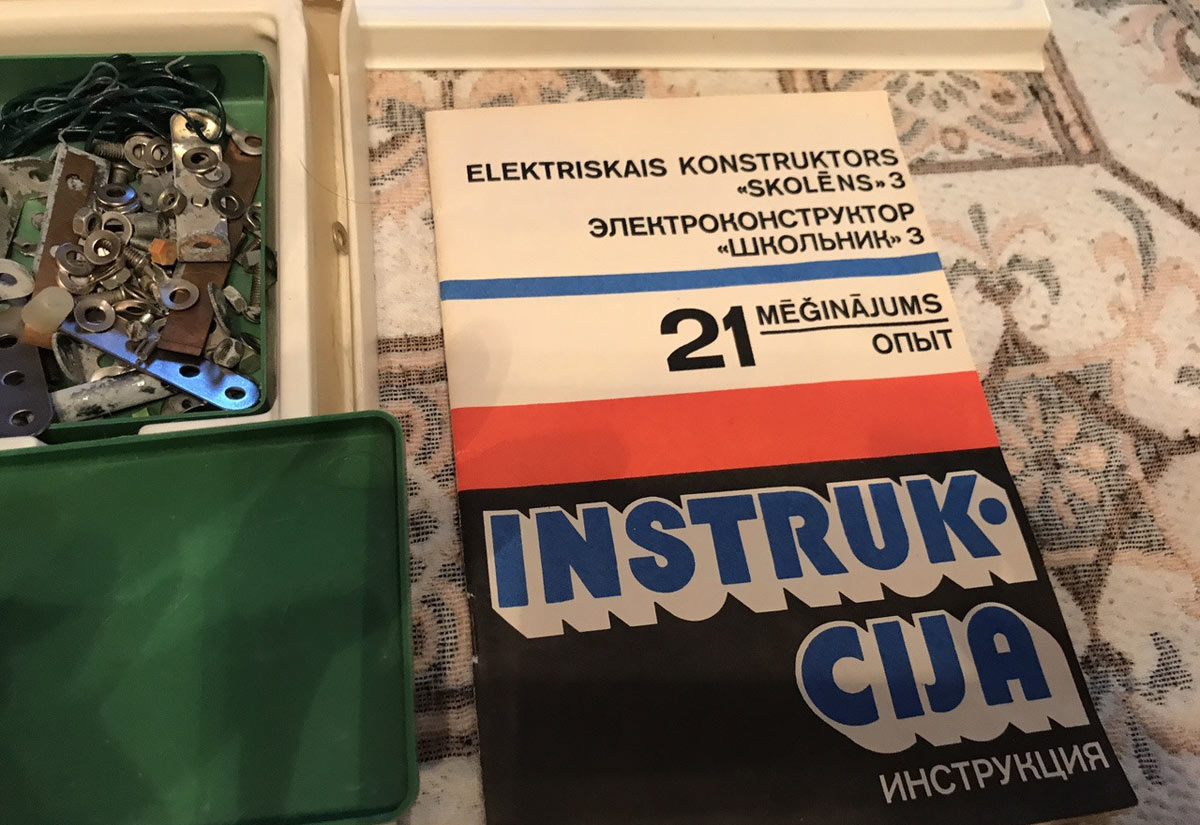 Электроконструктор *Школьник-3* выпускался предположительно с 1988 года Рижским ПО *Эра*. Электроконструктор позволяет провести 21 опыт.