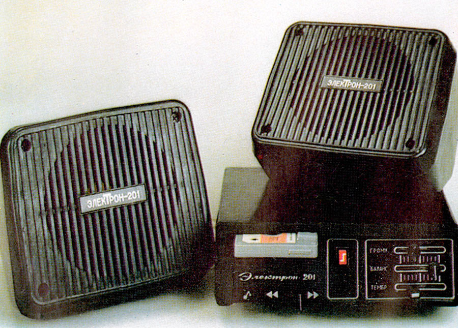 Автомобильное стереофоническое воспроизводящее магнитофонное устройство *Электрон-201-стерео* подготовил к выпуску с 1981 года завод НПО *Ани*, Ереван. Устройство отличается от АСВМУ *Электрон-301-стерео* наличием дополнительных функций.