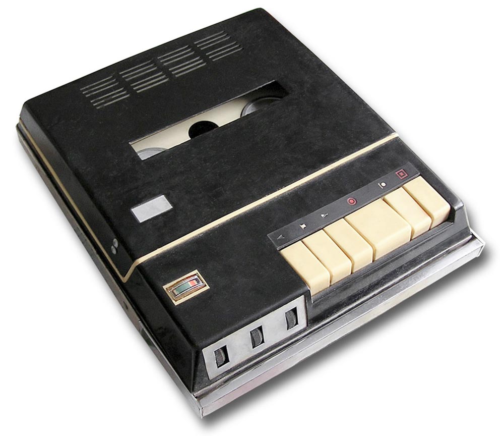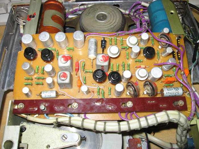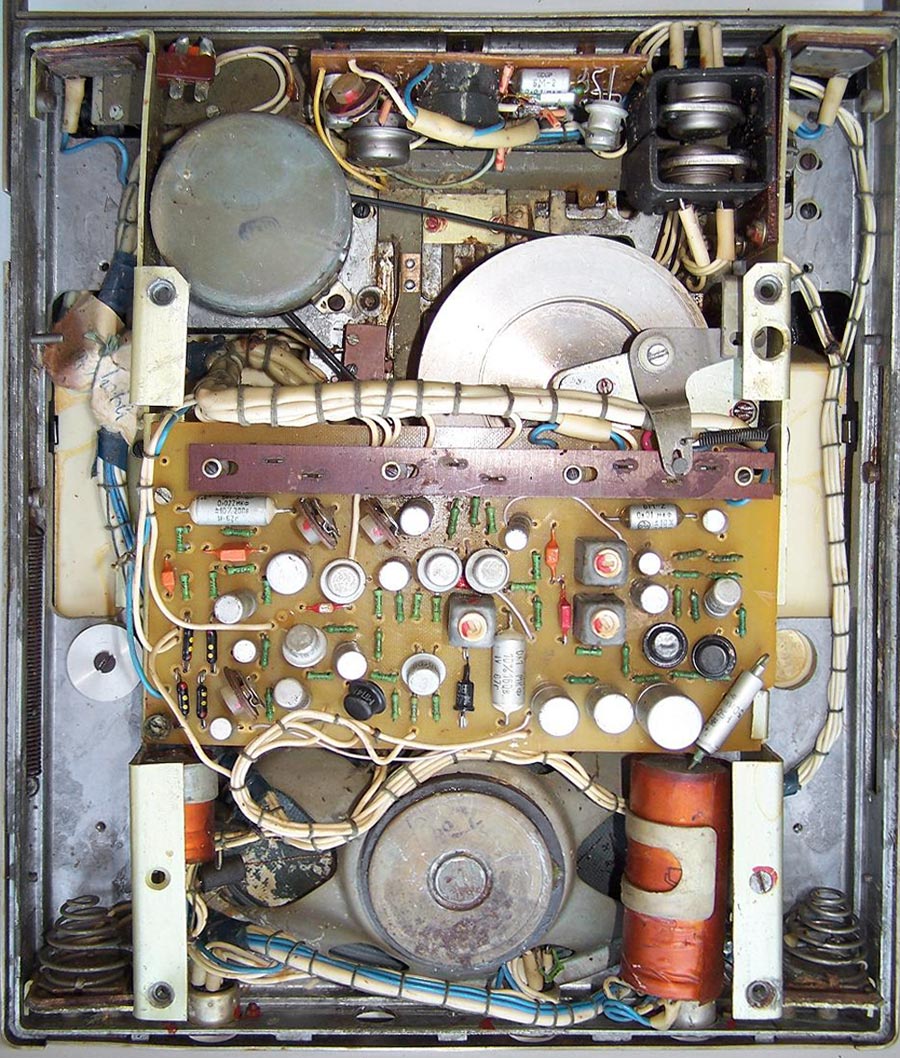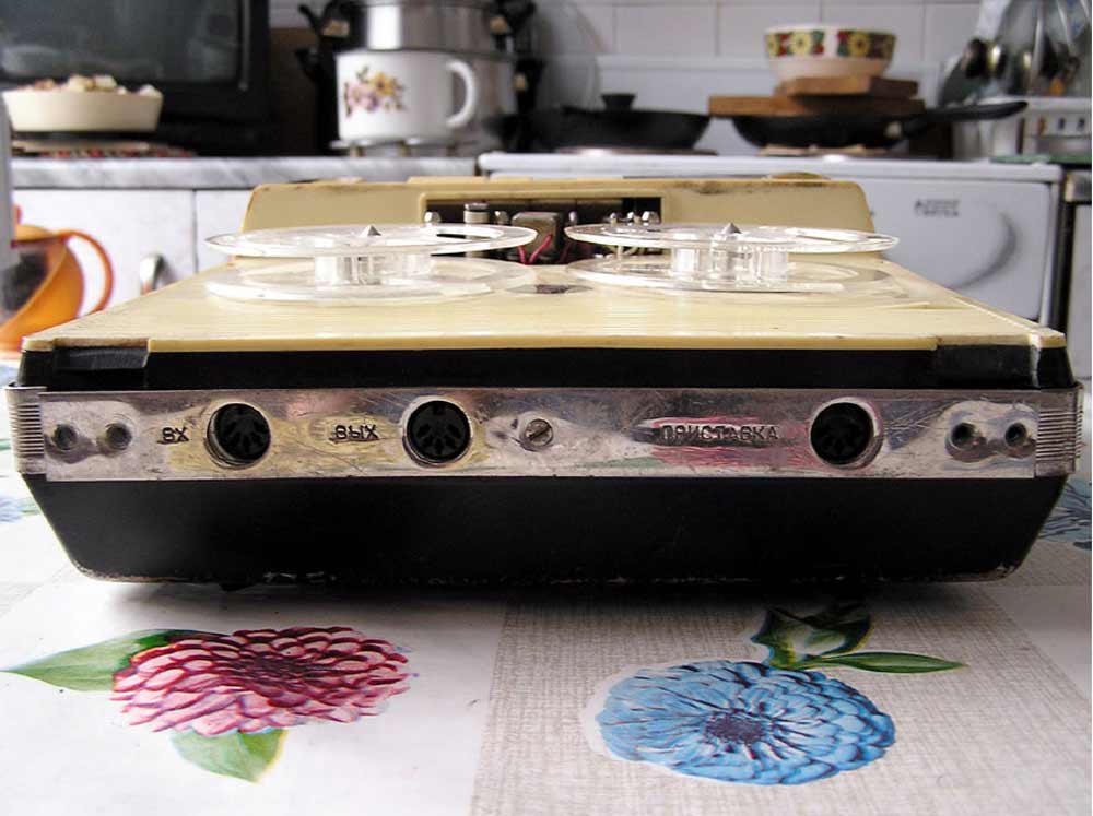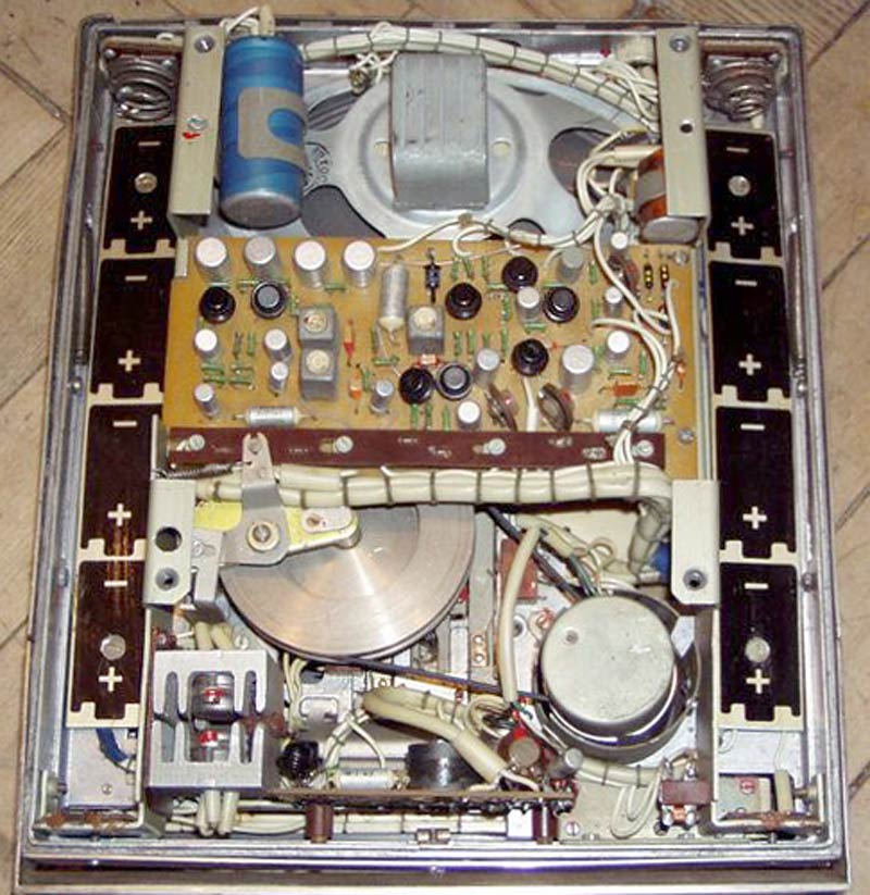 Портативный катушечный магнитофон *Электрон* выпускал с 1969 года Московский приборный завод. Магнитофон создан на базе любительского магнитофона *Электрон-4*, который экспонировался на 21-й Всесоюзной выставке творчества радиолюбителей-конструкторов 1968 года в Москве, был удостоен диплома первой степени и рекомендован для серийного производства. Магнитофон *Электрон* предназначен для записи и последующего воспроизведения фонограм на скорости 9,53 см/сек. Катушки вмещают 100 м. магнитной ленты типа 10. Полоса рабочих частот на ЛВ - 63...10000 Гц. Коэффициент детонации ЛПМ - 0,4%. Номинальная выходная мощность от батарей 0,5 Вт, от сети 1 Вт. Габариты магнитофона 283х290х100 мм, масса с батареями питания и лентой 4,7 кг. С 1972 года завод начал выпуск четырёхдорожечного магнитофона *Электрон-302*, который кроме других головок, переключателя дорожек и соответственно большего времени записи, по конструкции и виду не отличался от базового. Аппараты комплектовались приставкой, в которую входил блок питания от сети и дополнительный громкоговоритель.