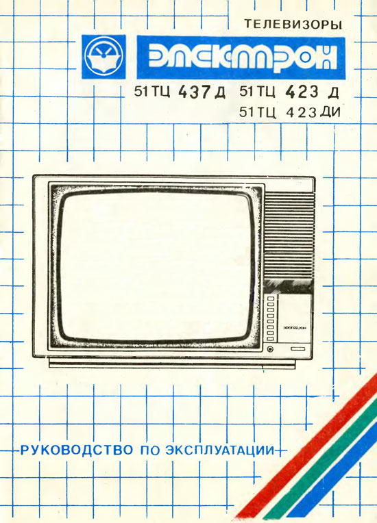 Цветной телевизор *Электрон 51ТЦ-423Д* с 1990 года выпускал Львовский телевизионный завод. Он обеспечивает приём ТВ программ в цветном и ч/б изображении в диапазонах МВ и ДМВ, в системах PAL и SECAM. Телевизор модульной конструкции на п/п и интегральных микросхемах. В телевизоре применён кинескоп с размером экрана по диагонали 51 см и углом отклонения лучей 90°. В телевизоре с индексом *И* применён импортный кинескоп. Телевизор обладает высокой чувствительностью и эффективной схемой АРУ, позволяя вести устойчивый приём. Выбор программ производится 8-программным электронным устройством со световой индикацией включенной программы. Переключение производится нажатием на одну из кнопок устройства, причём при любой нажатой кнопке телевизор можно настроить на любую из программ. Наличие АПЧГ обеспечивает переключение программ без регулировок. Схема обеспечивает работу ТВ при колебаниях напряжения сети в пределах 170...240 В. Телевизор обеспечивает прослушивание звука на головные телефоны при выключенной АС; запись звука телепередачи на магнитную плёнку; просмотр видеопрограмм от видеомагнитофона. Чувствительность в диапазонах МВ - 40 мкВ, ДМВ - 70 мкВ. Номинальная выходная мощность 1 Вт. Диапазон воспроизводимых звуковых частот 10...10000 Гц. Потребляемая мощность 70 Вт. Габариты телевизора 450х624х170 мм. Масса 24 кг. С 1991 года завод выпускал телевизор *Электрон 51ТЦ-437Д*, аналогичный описанному, но с системой дистанционного управления.