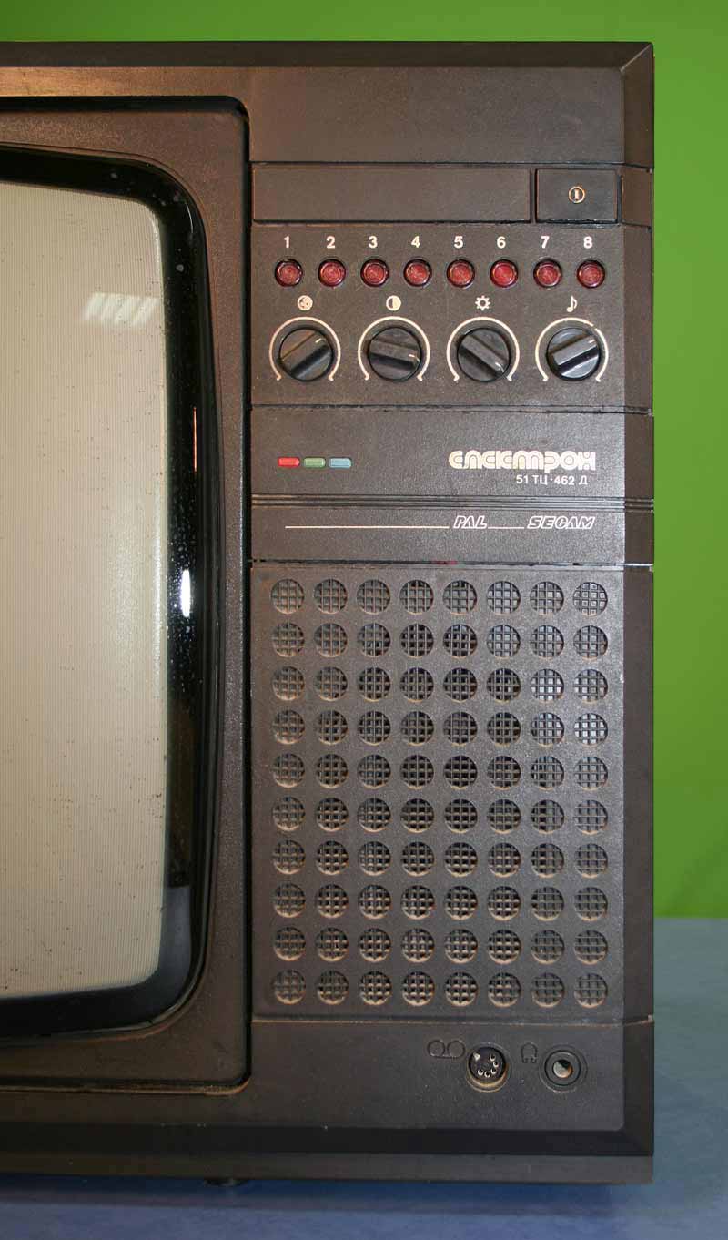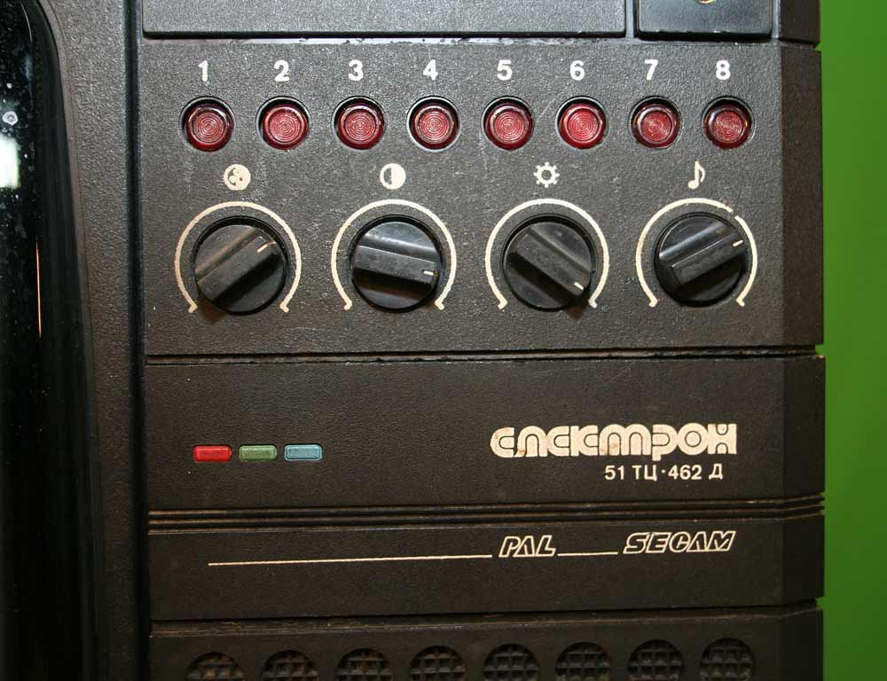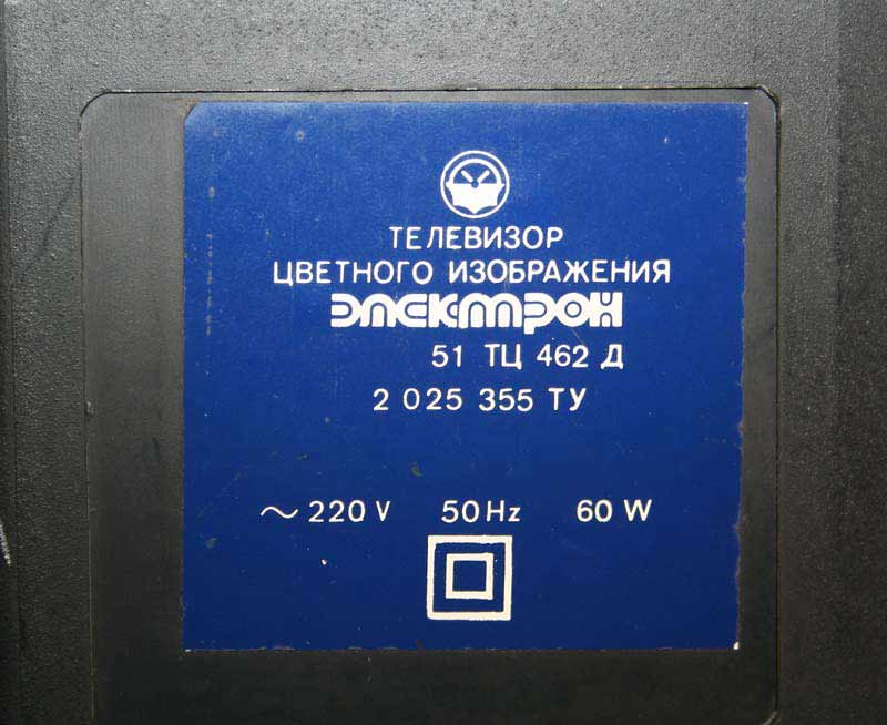 Телевизионный приёмник цветного изображения *Электрон 51ТЦ-462Д* с начала 1993 года выпускало Львовское ПО *Электрон*. Телевизор модульной конструкции на п/п и интегральных микросхемах обеспечивает приём телевизионных программ в цветном и ч/б изображении в МВ и ДМВ диапазонах в системах PAL или SECAM. В телевизоре применён кинескоп с диагональю экрана 51 см и углом отклонения лучей 90°. Телевизор обладают весьма высокой чувствительностью и эффективной схемой АРУ. Выбор программ производится 8 программным электронным устройством со световой индикацией включенной программы. Наличие системы АПЧГ обеспечивает переключение программ без регулировок. Схема обеспечивает работу телевизора при колебаниях напряжения сети в пределах 170...240 В. Телевизор обеспечивает прослушивание звукового сопровождения передач на головные телефоны; его запись на магнитную плёнку; просмотра видеопрограмм с видеомагнитофона. Чувствительность в МВ диапазоне - 40, в ДМВ - 70 мкВ. Номинальная выходная мощность канала звука 1 Вт. Диапазон воспроизводимых звуковых частот 10...10000 Гц. Потребляемая от сети мощность 60 Вт. Габариты телевизора - 455х625х175 мм. Вес 25 кг.