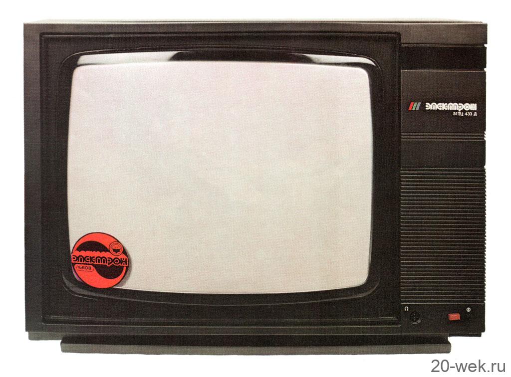 Цветной телевизор "Электрон 51ТЦ-433Д" с 1987 года выпускало Львовское ПО "Электрон". Цветной полупроводниково-интегральный телевизор ''Электрон 51ТЦ-433Д'' кассетно-модульной конструкции выполнен на основе моношасси с семью модулями: управления, радиоканала, строчной и кадровой разверток, цветности, дежурного режима и питания. Кинескоп 51ЛК2Ц с самосведением и углом отклонения лучей 90°. В телевизоре имеется: сенсорное устройство выбора программ, сенсорное устройство управление яркостью, контрастностью, насыщенностью, громкостью, включением и выключением. Имеется так же автоматический поиск каналов и автоматическое запоминание частоты настройки с цифровой индикацией выбранной программы. Имеется блокировка звука при отсутствии телевизионного сигнала. Приём программ возможен в диапазонах МВ и ДМВ. Есть гнёзда подключения видеомагнитофона, магнитофона, головных телефонов. Есть функция автоматического выключения телевизора по окончании передач. Имеется пульт для беспроводного дистанционного управления на инфракрасных лучах с 20 управляющими функциями, бестрансформаторный блок питания, позволяющий эксплуатировать телевизор без применения дополнительной стабилизации напряжения электрической сети, автоматическое опознавание и обработка ТВ сигналов, передаваемых по системам ПАЛ или СЕКАМ. Корпус модели облицован декоративной отделочной пленкой. Потребляемая мощность 85 Вт. Габаритные размеры 621х449х460 мм, масса 24,5 кг. В этом же году выпускался телевизор и с наименованием ''Электрон 51ТЦ-4330Д'', ничем не отличавшийся от описанного. С 1988 года завод выпускал большие телевизоры "Электрон 61ТЦ-433Д" и "Электрон 67ТЦ-433Д" по схеме и конструкции аналогичные модели "Электрон 51ТЦ-433Д".