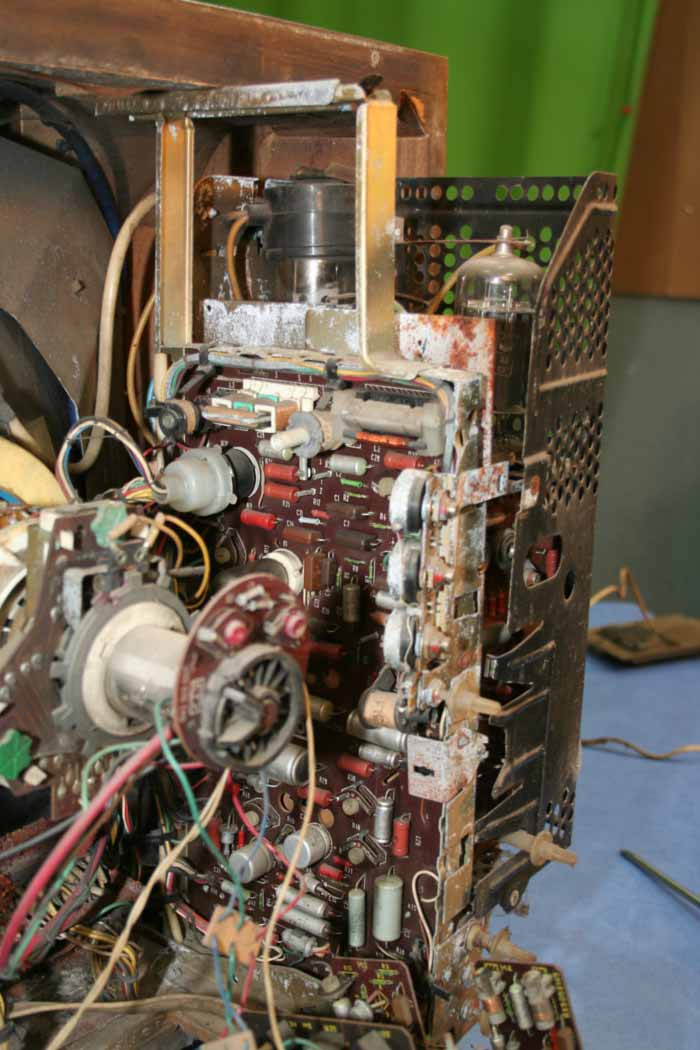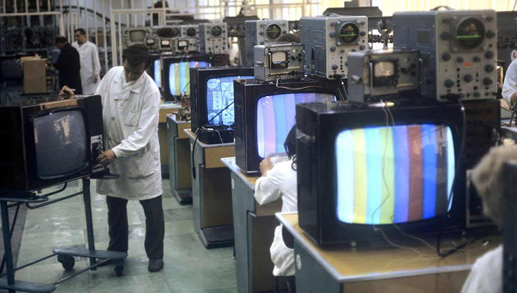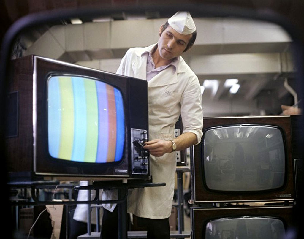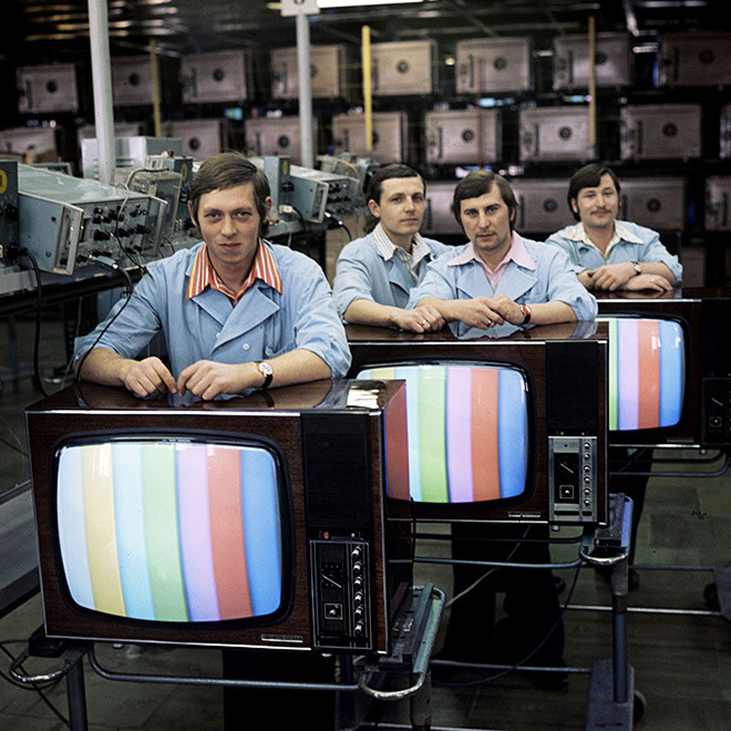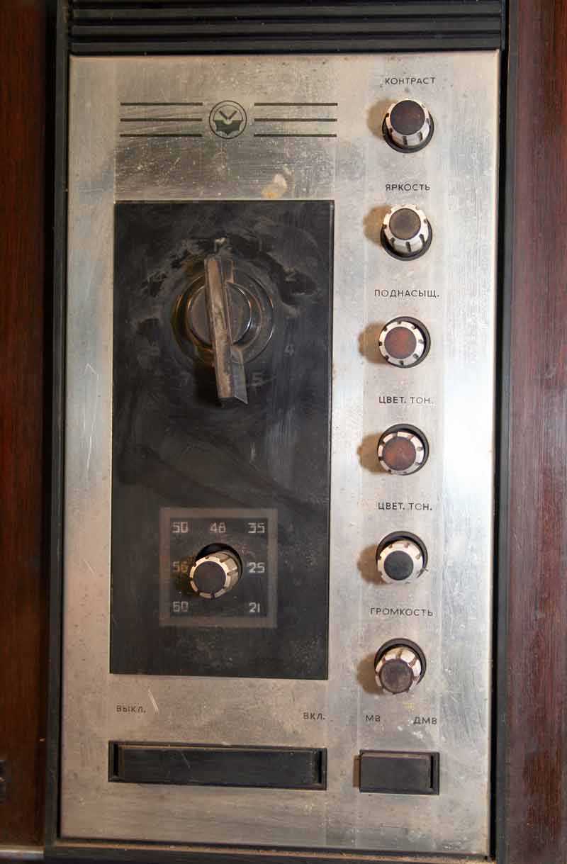 Унифицированный цветной телевизор *Электрон-703/Д* (тип УЛПЦТ-59-II-1) с 1972 года выпускал Львовский телевизионный завод. Телевизор работает в МВ и ДМВ диапазоне (после установки СКД-1), а в модели с индексом **Д** блок уже установлен. Высокая чувствительность с АРУ позволяет вести устойчивый приём на удалении от студии. Система АПЧГ исключает подстройки при переключении каналов. Для правильного воспроизведения цвета ручки насыщенности и контрастности сдвоены. Ручки под-насыщенности и цветового тона позволяют изменять цветовую насыщенность и окраску картинки. При приёме ч/б изображения автоматически отключаются режекторные фильтры. Уменьшение влияния помех достигается схемой АПЧ и Ф. В ТВ имеется автоматическое поддержание размеров изображения и напряжения на втором аноде кинескопа при небольших колебаниях напряжения в сети, а также автоматическое размагничивание кинескопа при включении. Применена подсветка номера канала шкалы ДМВ диапазона. Телевизор собран из законченных блоков, соединённых разъёмами. Есть гнёзда для подключения магнитофона на запись звука, прослушивание его на головные телефоны при отключенной АС и возможность установки проводного ПДУ. Габариты аппарата 775х550х550 мм. Вес 65 кг. Выпускался телевизор в настольном исполнении в деревянном футляре, облицованном ценными породами дерева.