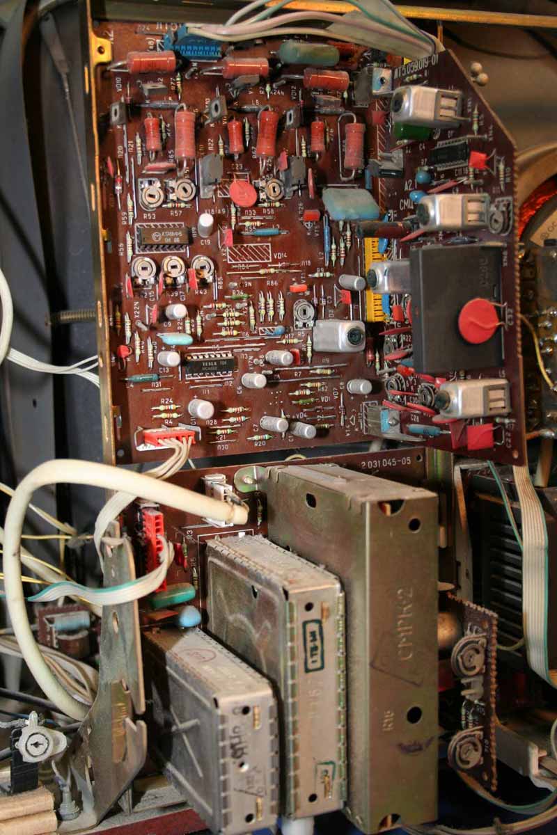 Телевизионный приёмник цветного изображения *Электрон Ц-275/Д* с начала 1982 года выпускал Львовский телевизионный завод. *Электрон Ц-275/Д* - полупроводниково-интегральный цветной телевизор кассетно-модульной конструкции на основе моношасси с 5 модулями: радиоканала, цветности, строчной и кадровой разверток, питания. Кинескоп типа 61ЛК4Ц с углом отклонения лучей 90° (наличие блока сведения). Сенсорное устройство выбора программ с индикацией. Приём в диапазоне МВ. Телевизоры с индексом *Д* работают в диапазонах МВ и ДМВ. Есть гнёзда для магнитофона, головных телефонов. Бестрансформаторный БП позволяет эксплуатировать телевизор без стабилизатора. Корпус облицован декоративной отделочной пленкой или шпоном ценных пород древесины с покрытием полиэфирным лаком. Потребляемая мощность 120 Вт. Габариты телевизора 495х748х550 мм. Масса 37 кг.