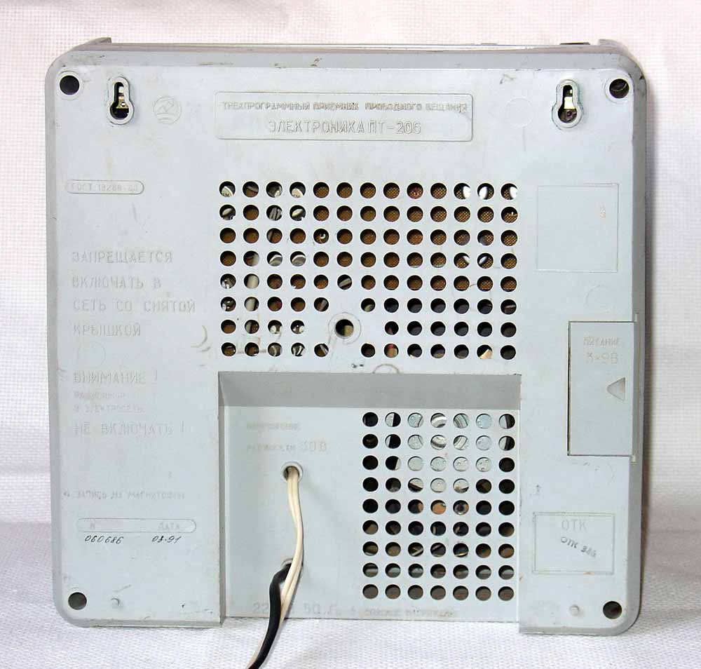 Приёмник трёхпрограммный *Электроника-206* с 1986 года выпускал Ставропольский завод *Изумруд*. С ПТ *Электроника* была полная неразбериха в наименованиях. Выпускали приёмники трёхпрограммные под наименованием *Электроника* несколько заводов страны и иногда более низкий номер в наименовании был более современным по году выпуска. То же с приставкой ПТ, зачастую и после 1987 года многие ПТ выпускались и с приставкой ПТ и без. И ещё обратите внимание на 3 слитные буквы в наименование приёмника с ПТ. ПТ *Электроника ПТ-206* стали выпускать с осени 1989 года.