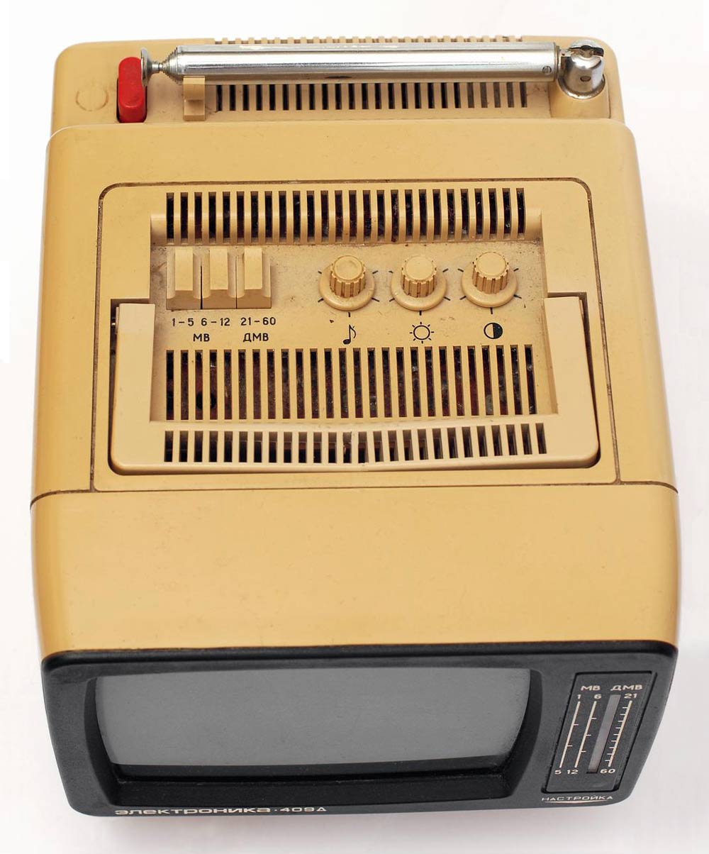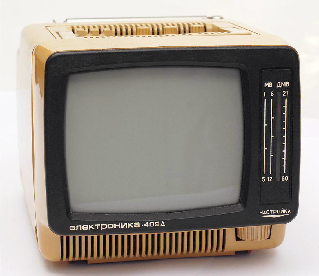 Телевизионный приёмник чёрно-белого изображения *Электроника-409/Д* с 1988 года выпускал Хмельницкий завод *Катион*. **Электроника-409/Д** - малогабаритный полупроводниковый телевизор с применением интегральных схем. В модели применен кинескоп типа 16ЛК8Б с размером экрана по диагонали 16 см и углом отклонения электронного луча 70°. Телевизор обеспечивает приём телевизионных передач на любом из 12 каналов МВ диапазона, а телевизор с индексом **Д** и на любом иэ 40 каналов ДМВ диапазона; прослушивание звукового сопровождения на головные телефоны, при включенной АС. Эффективная АРУ обеспечивает устойчивое изображение. Модель состоит из нескольких функциональных узлов размещённых в пластмассовом корпусе. Монтаж печатный выполнен на 3-х поворотных платах. В телевизоре применена электронная настройка на принимаемый канал ручкой **Настройка**, расположенной на передней панели телевизора. Размер изображения 98х120 мм. Чувствительность модели в диапазоне МВ - 40, ДМВ - 70 мкВ. Разрешающая способность 400 линий. Номинальная выходная мощность 0,15 Вт. Потребляемая мощность от сети 17 Вт, от источника 12 В. 8 Вт. Габариты телевизора 178х160х525. Масса 3,15 кг. С 1990 года Хмельницкий завод *Катион* и Раховский завод *Конденсатор* на основе телевизора выпускали видеоконтрольное устройство *Электроника-409 ВКУ* рассчитанное на работу с видеокамерой *Электроника Л-50*.