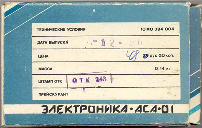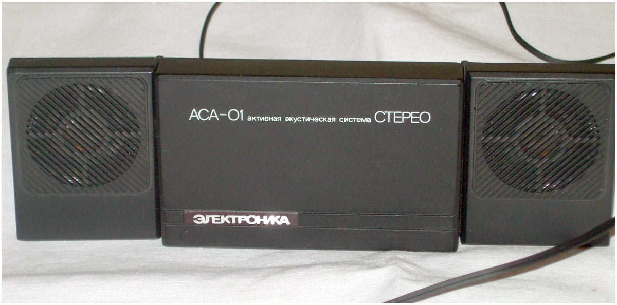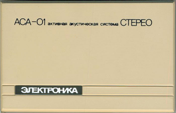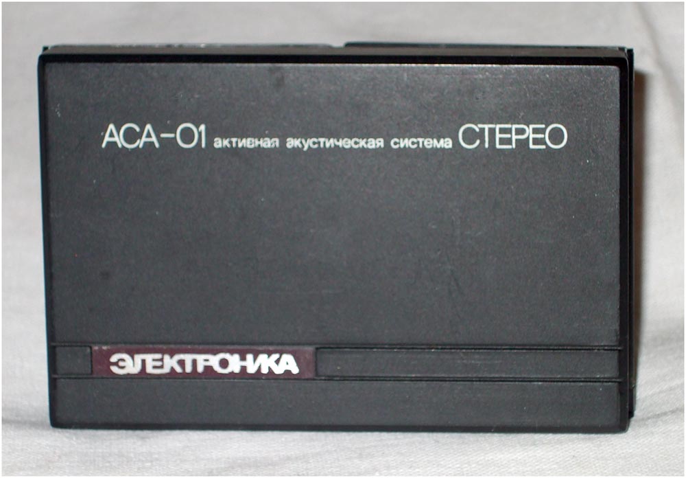 Активная акустическая система *Электроника АСА-01* с 1989 года выпускал Саратовский завод *Алмаз*. Миниатюрная ААС предназначена для усиления и воспроизведения стереофонических программ с малогабаритных источников сигнала звука, таких как переносные кассетные проигрыватели и радиоприёмники, где имеется выход звукового сигнала только на малогабаритные головные или на ушные телефоны. АСА воспроизводит полосу звуковых частот 500...5000 Гц. Номинальная выходная мощность 2х100 мВт. Питание 6 В. (4 элемента А-316). Время работы от комплекта батарей не менее 6 часов. Длина входного шнура 28,3 мм. Размеры АСА - 112х71х27 мм. Масса 140 гр. Выпускались АСА с улучшенными громкоговорителями, где диапазон эффективно воспроизводимых частот звука был расширен до 300...7000 Гц.