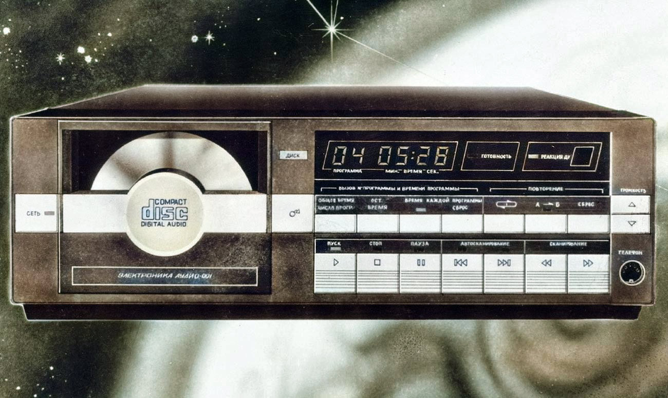 Проигрыватель компакт-дисков *Электроника Аудио-001* разработан предположительно в 1987 году. Опытный ПКД разработан Московским НИИ *Полюс* с использованием только отечественных комплектующих. Производство планировалось наладить в сотрудничестве с Рижским ПО *Радиотехника* и Минским заводом *БелОМО*. Информация и фото Максима Пчелиного, Москва.