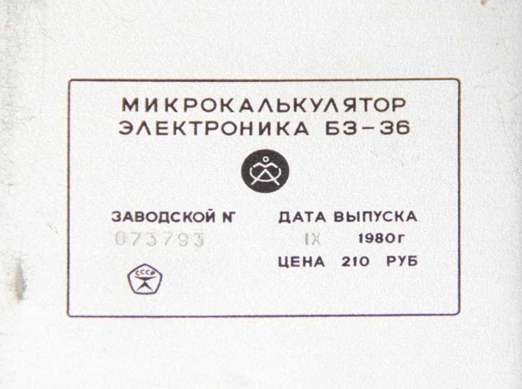 Микрокалькулятор «Электроника Б3-36» — улучшенная версия «Электроники Б3-35» — отличается от своего предшественника габаритными размерами, весом, временем работы без замены источников питания, типом индикатора зеленого свечения, а также материалом корпуса, который был заменен с пластикового на металлический. Микрокалькулятор выпускался с 1979 года на заводах «Ангстрем» в Зеленограде и «Биллур» в Азербайджане. Калькулятор имеет 1 регистр памяти. Процессор - К145ИП15 калькулятора выполняет арифметические операции, вычисление натуральных и десятичных логарифмов и антилогарифмов, прямых и обратных тригонометрических функций, обратных величин, факториала, вычисления с двухуровневыми скобками, возведение в степень, извлечение корней и операции с памятью. Прототипом этого калькулятора является Rockwell THE 74K, дизайн почти одинаковый, а функции - один к одному. До 1980 года продавался по цене 210 рублей, затем по цене 120 рублей, а в декабре 1981 года цена была снижена до 70 рублей. Впоследствии калькулятор выпускался под маркой «Электроника МК-36». Калькулятор предназначен для инженерных и экономических расчетовДля отображения результатов вычисления используется восьмиразрядный вакуумно-люминесцентный индикатор. Питание калькулятора осуществляется от четырех аккумуляторов типа Д-0,25 или от блока питания типа Д2-10М. Время работы без замены источников питания составляет семь часов. Габаритные размеры модели: 148✕78,6✕17,5 мм.Вес калькулятора: 0,2 кг.