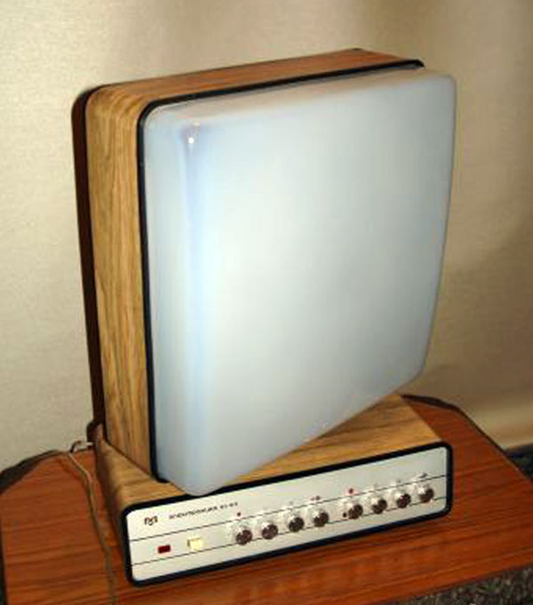 Автоматическая цветомузыкальная установка *Электроника Е1-04* выпускалась с начала 1981 года. ЦМУ предназначена для светоцветового сопровождения музыкальных фонограмм. Конструкция позволяет разделить частотный спектр фонограмм на четыре полосы соответствующие 4-м цветам. В зависимости от содержания фонограмм, за счёт загорающихся ламп разных цветов и их комбинаций получаются красочные цветовые эффекты. А за счёт перепадов уровня сигнала от тихого к громкому лампы так же динамически изменяют силу света. Всё это вместе значительно усиливают восприятие музыки. Общая мощность ламп ЦМИ около 400 Вт. Цена установки 145 рублей.