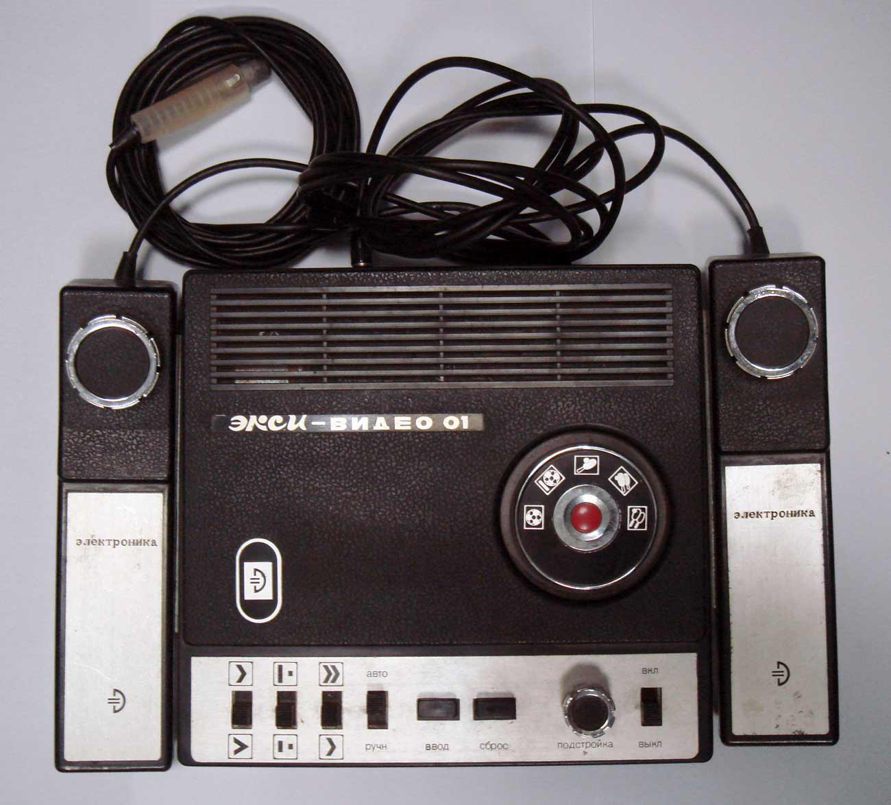 Телевизионная игровая приставка *Экси-Видео 01* выпускалась с I-кв 1978 года Павлово-Посадским заводом *Экситон*. Приставка воспроизводит на экране любого телевизионного приёмника различные игровые ситуации между двумя партнерами, так и между игроком и автоматическим партнером. Реализуемые игры: футбол, теннис, сквош, тренировка, футбол с гандикапом. Регулируемые параметры игр: размер ракеток, размер мяча, темп игры. Регистрация счёта автоматическая, очки до 15. Питание от сети переменного тока 220 В. выход на телевизор высокочастотный на 4-м или 5-м ТВ канале. Габариты приставки - 190х180х50 мм. Выносных пультов 180х50х45 мм. Блока питания 70х70х80 мм. Масса комплекта 2 кг. Цена приставки 90 рублей.
