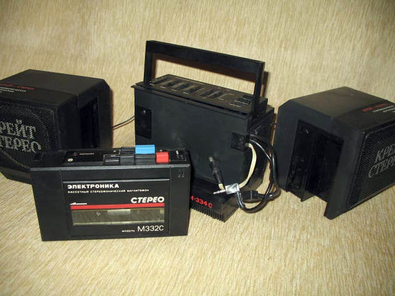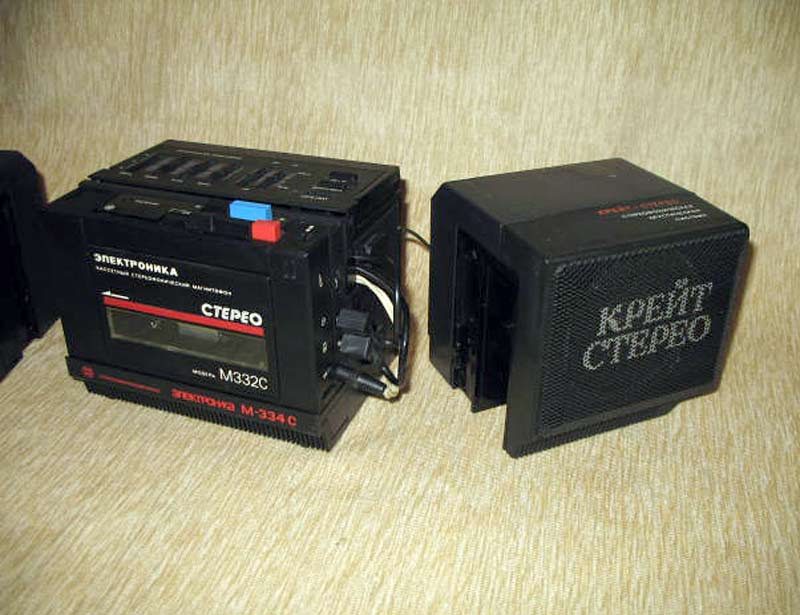 Стереофонический кассетный магнитофон *Электроника М-334С* (кенгуру) с 1989 года выпускал Нововоронежский завод *Алиот*. Магнитофон *Электроника М-334С* состоит из автономного малогабаритного кассетного магнитофона *Электроника М-332С* (вариант сделанный специально под данный аппарат), стереофонического усилителя, двух неразъёмных акустических систем и блока питания, объединённых в общем корпусе. Все характеристики, кроме выходной и потребляемой мощности соответствуют малогабаритному магнитофону *Электроника М-332С*.