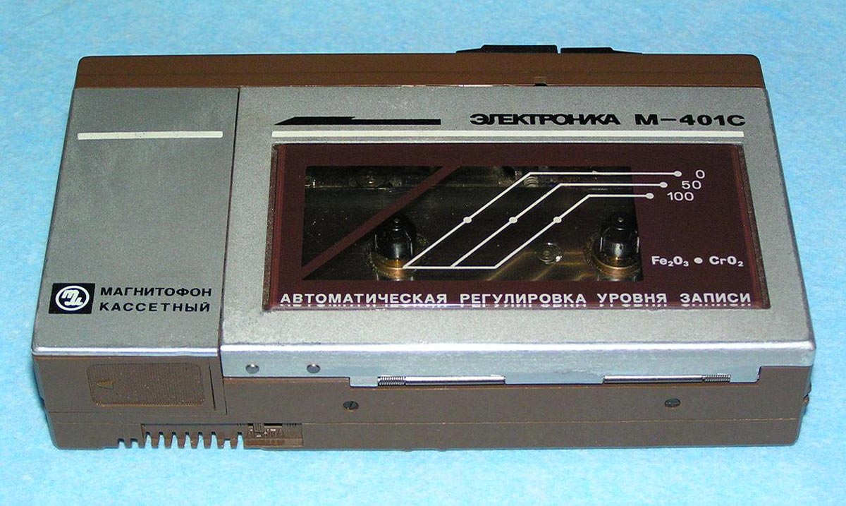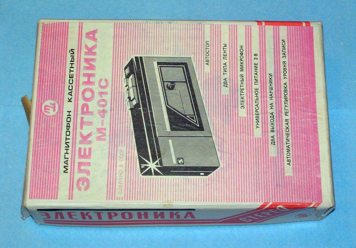 Портативный кассетный стереофонический магнитофон *Электроника М-401С* с 1988 года выпускал Зеленоградский завод ТочМаш. Мини-магнитофон 4 группы сложности с автономным питанием предназначен для записи или воспроизведения фонограм на магнитную ленту. Запись производится с применением АРУЗ. Воспроизведение осуществляется на стереофонические телефоны. Питание - 3 В. Диапазон рабочих частот 63...12500 Гц. Номинальная выходная мощность 2х3 мВт. Габариты модели - 145х32х88 мм. Вес 350 гр. Магнитофон является аналогом магнитофона *Электроника-мини стерео* выпускаемого заводом с 1986 года.