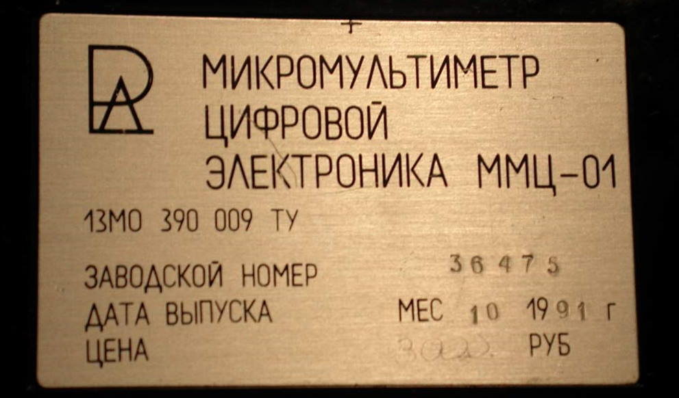 Микромультиметр цифровой *Электроника ММЦ-01* выпускался с I-кв 1989 года. Предназначен для измерения напряжения, силы постоянного и переменного тока, сопротивления постоянному току. Напряжение от 0 до 1000 В. Сила постоянного и переменного тока от 0 до 10 А. Сопротивление постоянному току от 0 до 20 МОм.