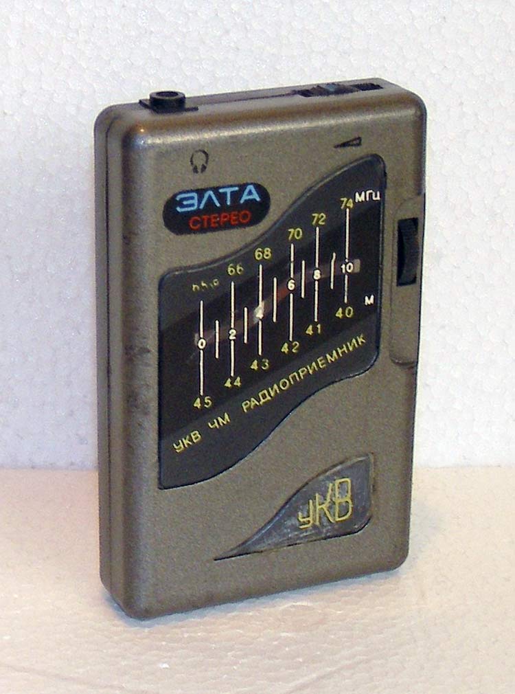 Портативный УКВ радиоприёмник *Элта-Стерео* выпускался с 1993 года. Приёмник предназначен для приёма стереофонических программ радиовещательных станций в УКВ-ЧМ диапазоне. Прослушивание осуществляется на головные стереофонические телефоны, провода которых служат одновременно и антенной. Питается приёмник от одной батареи типа АА. Номинальная выходная мощность 2х5, максимальная 2х25 мВт. Диапазон воспроизводимых звуковых частот на выходе для стереотелефонов 40...14000 Гц. Батареи достаточно на 50 часов непрерывной работы. Габариты приёмника 90х56х18 мм. Масса без батареи 50 гр.