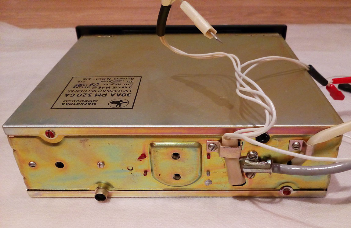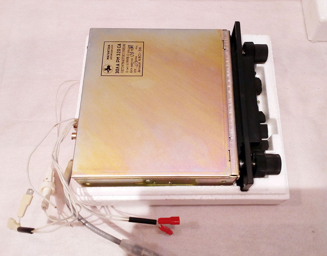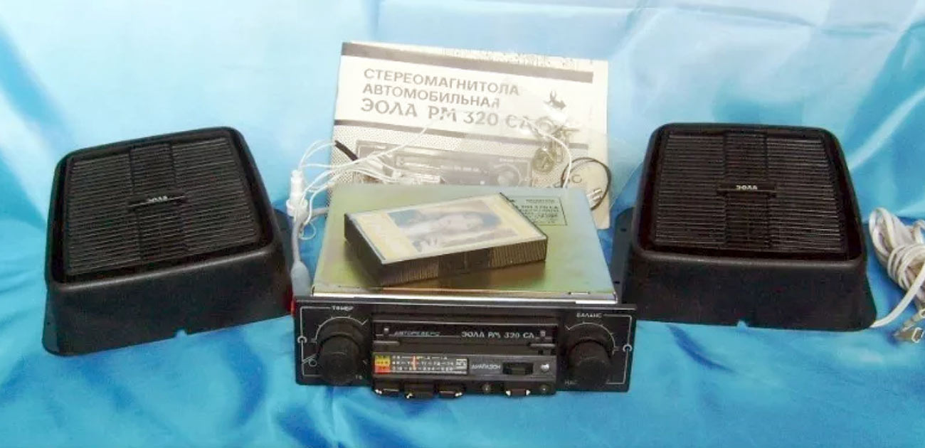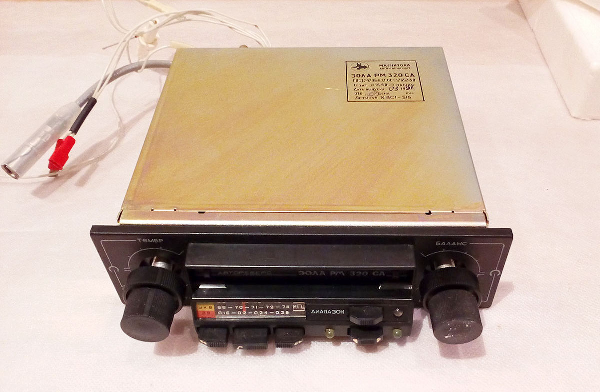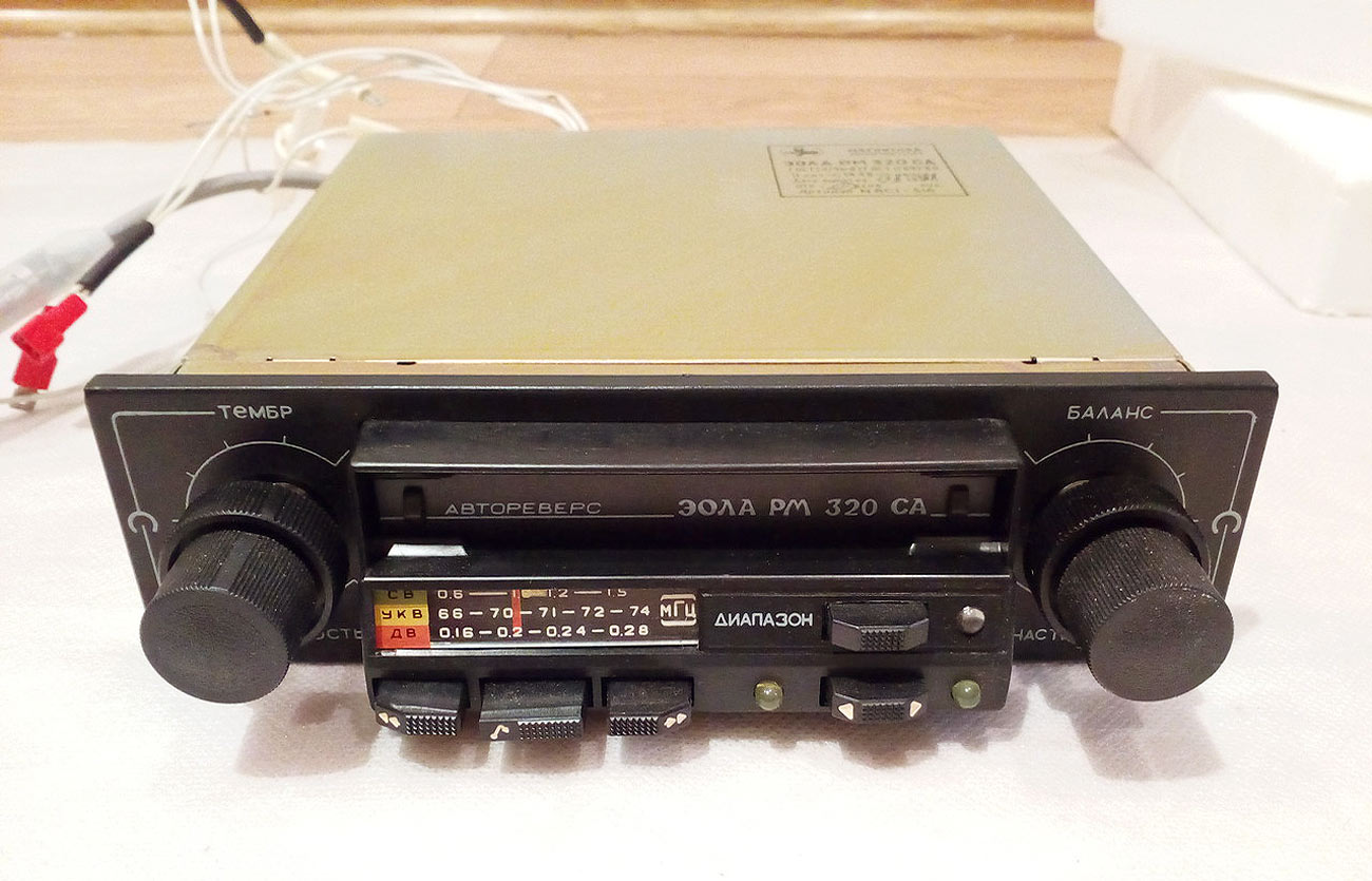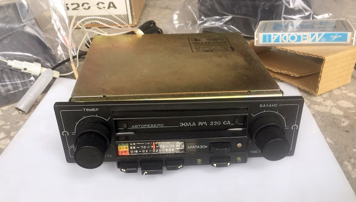 Автомобильная стереофоническая магнитола *Эола РМ-320СА* с 1988 года выпускалась Тамбовским заводом *Электроприбор*. Она предназначена для установки в автомобили **Москвич** и **Жигули** и позволяет производить приём радиостанций в диапазонах: ДВ, СВ и УКВ и воспроизводить моно и стереофонические фонограммы, размещенных в кассетах МК-60. Магнитола имеет АПЧ в диапазоне УКВ, плавную регулировку громкости, тембра ВЧ, баланса, перемотку ленты с фиксированным включением, индикацию направления движения ленты во время воспроизведения. Модель снабжена автореверсом, изменяющим направление движения ленты, при остановке ленты с переключением дорожек. Реверс включается и в ручном режиме. Чувствительность в диапазонах: ДВ 140, СВ 55; УКВ 4 мкВ. Селективность 36 дБ. Диапазон рабочих частот звука на АС: АМ 100...2000 Гц; ЧМ 80...10000 Гц; в режиме воспроизведения 63...10000 Гц. Cкорость ЛПМ 4,76 см/с. Коэффициент детонации 0,4%. Максимальная выходная мощность 4 Вт на канал. Питание от бортовой сети. Потребляемая мощность 18 Вт. Габариты модели 180х52х170 мм. Масса 2 кг. Масса АС 1,2 кг.