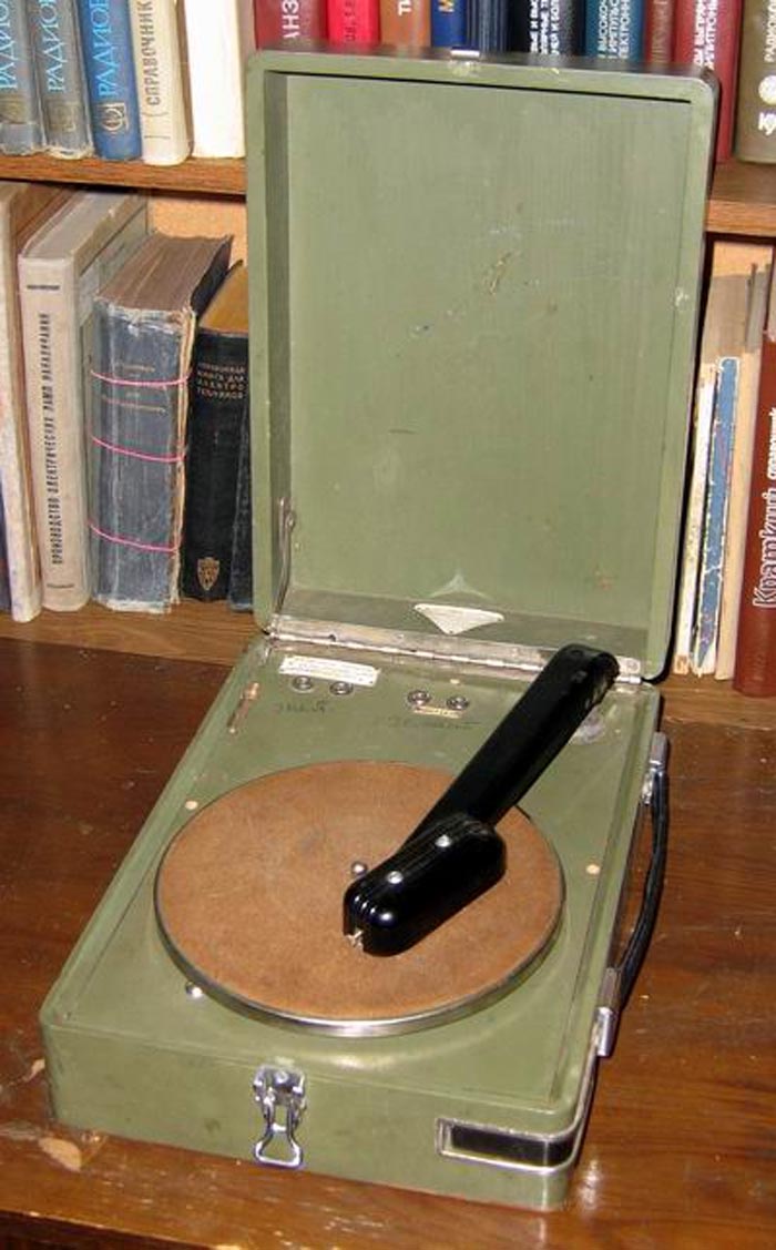 Электропроигрыватель без наименования выпускала с начала 1941 года Ленинградская фабрика Радио-Изделий. Аппарат рассчитан на проигрывание стандартных грампластинок на скорости 78 об/мин совместно с любым радиоприёмником имеющим адаптерный вход для магнитного звукоснимателя. Синхронный двигатель МС-1 при включении начинал вращаться только с раскручиванием его вручную. Электропроигрыватель имел электромагнитный звукосниматель с выходным напряжением до 1,5 вольта и диапазоном воспроизводимых частот 100...5000 Гц. Иглы в звукоснимателе применялись патефонные. Питание только от электросети 127 вольт. Если кто владеет информацией по этому аппарату, большая просьба поделится в комментариях.