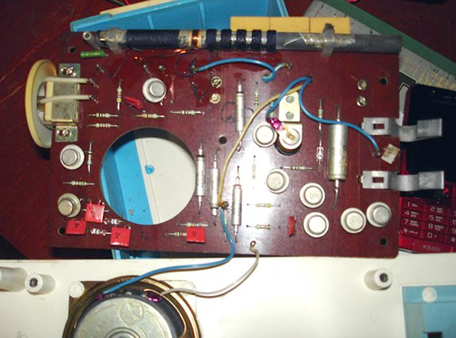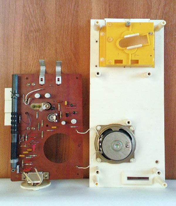 Стационарный транзисторный радиоприёмник *Ермак* с начала 1979 года выпускал Омский приборостроительный завод имени Козицкого. Настольный сувенир *Ермак* с гербами города Омска представляет собой радиоприёмник прямого усиления, который работает в диапазонах длинных (ДВ) и средних (СВ) волн. Сувенир может использоваться так же и в качестве кратковременного маломощного светильника. Радиоприёмник собран на девяти германиевых транзисторах. Сувенир *Ермак* имеет переключатель рода работ и ручку для настройки на радиовещательные станции. Регулятор громкости в сувенире не предусмотрен. Диапазоны принимаемых радиочастот: длинные волны 145...700 кГц, средние волны 500...1700 кГц. Избирательность по соседним каналам в диапазоне ДВ - 8..10 дБ, СВ - 6...8 дБ. Чувствительность на магнитную антенну в диапазонах ДВ, СВ - 5..7 мВ/м. Номинальная выходная мощность - 100 мВт, максимальная - 150 мВт. Диапазон воспроизводимых звуковых частот 250...5000 Гц, достаточно качественное звучание которое несколько портится расположением громкоговорителя на задней стенке сувенира, с выходом звукового давления туда же. Питание осуществляется от батареи типа *КБС-Л*, напряжением - 4,5 В. В 1988 году электрическая схема сувенира переведена на кремниевые транзисторы в том же количестве. Технические характеристики приёмника - прежние.