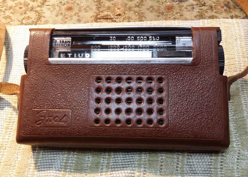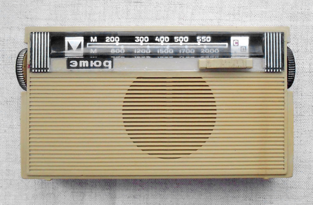 Портативный транзисторный радиоприёмник *Этюд* с 1967 года выпускал Минский радиозавод. Приёмник собран на 7 транзисторах и 3-х диодах и работает в диапазонах ДВ и СВ. Отличается от других бестрансформаторным усилителем. Небольшие размеры приёмника 136х76х24 мм и вес 250 грамм, ставят его в разряд действительно карманных. Источник питания - батарея Крона. Реальная чувствительность в диапазоне ДВ - 2 мВ/м, СВ - 1,2 мВ/м. Избирательность по соседнему каналу 16 дБ, по зеркальному 26 дБ. Максимальная выходная мощность 100 мВт. КНИ 3%. В приёмнике применён громкоговоритель 0,1ГД-9. Приём осуществляется на магнитную антенну, с возможностью подключения внешней антенны. Время работы от свежей батареи 50 часов. В 1968 году приёмник модернизирован при прежнем наименовании. Об этом варианте в справочнике Белова, Дрызго.