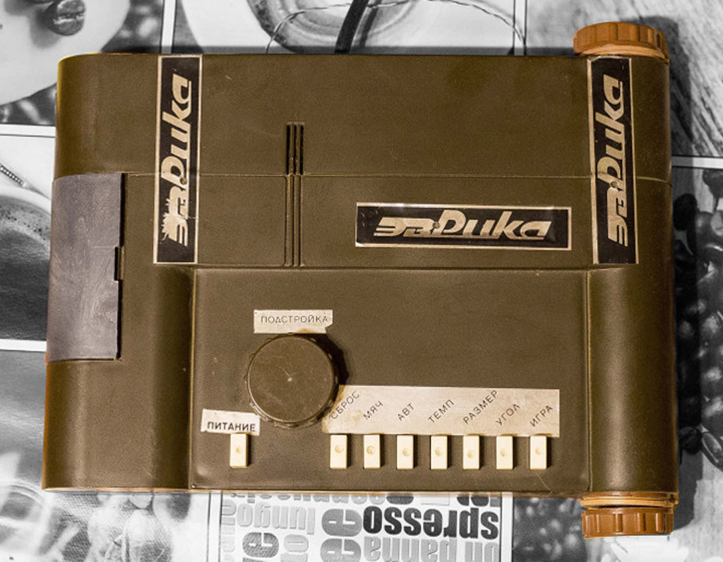 Электронная видеоигра *Эврика* выпускалась с 1989 года Харьковским заводом *Электробытприбор*. Предназначена для имитации на экране чёрно-белого или цветного телевизора пяти спортивных игр: Футбол, Теннис, Волейбол, Сквош, Хоккей. В любую игру может играть один или два человека. Телевизионный сигнал сформирован для просмотра на четвёртом или пятом канале телевизора. Питается приставка от 6 элементов А-373. Габариты приставки 300 х 260 х 65 мм, выносного пульта 90 х 50 мм. Масса без питания 1 кг.
