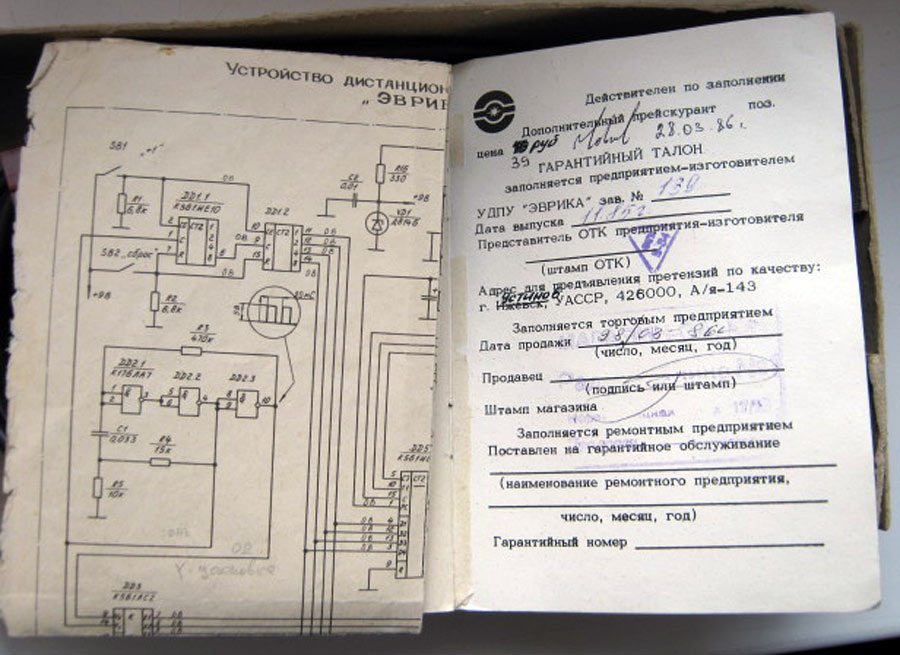 Устройство дистанционного программного управления *Эврика Э-01* (позднее *Эврика*) с 1985 года выпускал Ижевский электромеханический завод.