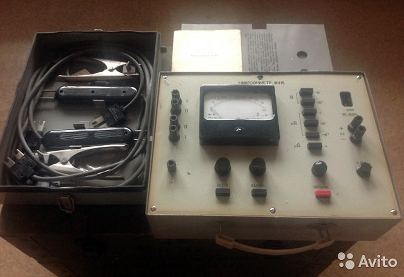 Микроомметр *Ф415* выпускался предположительно с 1972 года. Микромметр *Ф415* предназначен для измерения сопротивления при проведении ремонтных работ и лабораторных исследованиях. Конечные значения диапазонов измерений 100 мкОм; 1 мОм; 10 мОм; 100 мОм; 1 Ом; 10 Ом. Питание от сети 220 В или от аккумуляторов 6 В. Ток потребления при питании от аккумулятора 3,5 А. Мощность, потребляемая от сети 50 В·А. Габаритные 370х285х180 мм. Масса 12 кг.