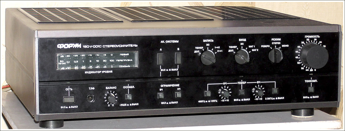 Усилитель полный *Форум 180У-001-стерео* выпускал с I-кв 1988 года Ленинградский завод им. Калинина. Усилитель представляет собой модернизацию усилителя *Форум У-001-стерео*. *Форум 180У-001С** это полный усилитель ЗЧ предназначенный для высококачественного усиления сигналов с различных источников до мощности 180 Вт. Диапазон частот 20...20000 Гц. Коэффициент нелинейных искажений на частотах от 250 Гц до 8 кГц не превышает 0,01%. Усилитель имеет регуляторы тембров и переключатель источников сигнала. Потребляемая мощность 330 Вт. Габариты усилителя 440х145х420 мм. Масса 17 кг.