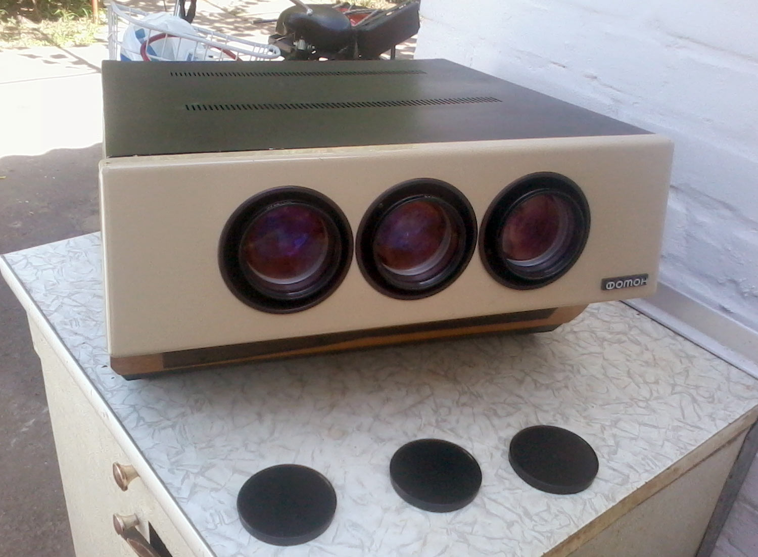 Телевизионный проектор *Фотон-150 ПТЦ-501* с 1990 года выпускал Симферопольский завод телевизоров. Проектор выполнен на основе телевизора пятого поколения и обеспечивает приём цветных телевизионных програм и демонстрацию их на специальный экран с диагональю от 1,5 до 3 метров. Так же имеется возможность демострации видеосигнала и звукового сопровождения с низкочастотных входов пректора. Более подробно о проекторе в его инструкции.