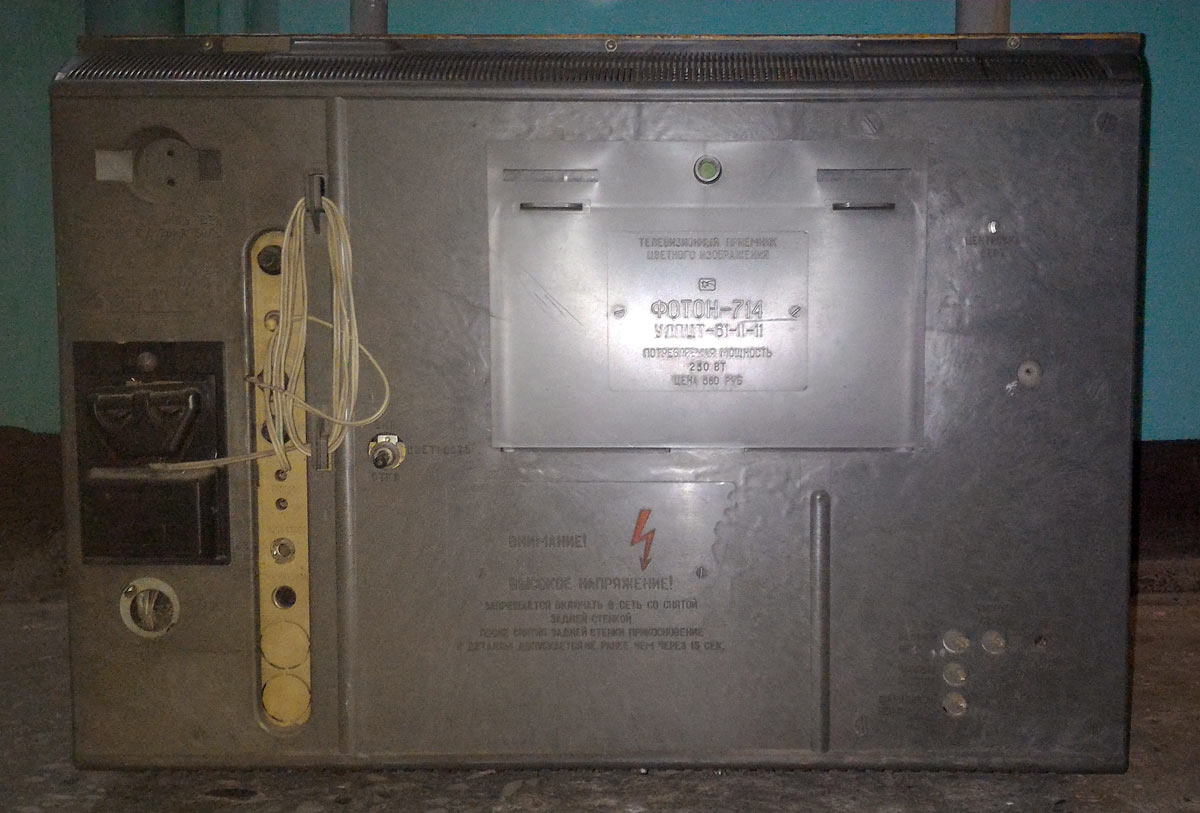 Телевизионный приёмник цветного изображения *Фотон-714/Д* с начала 1977 года выпускал Симферопольский завод телевизоров им. 50 летия СССР. Телевизор **Фотон-714** - это унифицированный (УЛПЦТ-61-II-11/10) лампово-полупроводниковый телевизионный приёмник, предназначенный для приёма программ телевизионных студий в цветном или чёрно-белом изображении в диапазонах МВ и ДМВ (индекс Д). Полоса воспроизводимых частот 80...12500 Гц. Номинальная выходная мощность канала звука 2,5 Вт. Потребляемая мощность 250 Вт. Габариты телевизора 770х550х545 мм. Вес 60 кг. Основные характеристики Тип: Унифицированный лампово-полупроводниковый цветной телевизионный приёмник (УЛПЦТ-61-II-11/10). Производство: Симферопольский завод телевизоров им. 50-летия СССР. Начало выпуска: С начала 1977 года. Приём: Телевизор предназначался для приёма программ телевидения в цветном и чёрно-белом изображении. Диапазоны: Работал в диапазонах метровых волн (МВ) и дециметровых волн (ДМВ) — на что указывает индекс «Д» в названии. Размер изображения: 482 х 362 мм. Чувствительность: В диапазоне МВ — 50 мкВ. В диапазоне ДМВ — 110 мкВ.