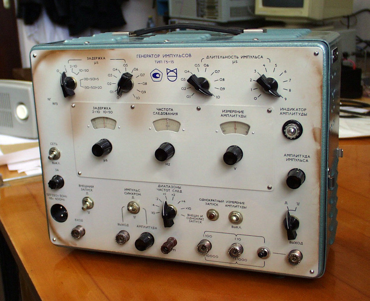 Малогабаритный генератор импульсов *Г5-15* с начала 1973 года выпускал Минский НИИ приборостроения. Малогабаритный генератор импульсов **Г5-15** предназначен для проверки, контроля или настройки различной радиотехнической аппаратуры в лабораторных и полевых условиях. Питание от сети 220 В.