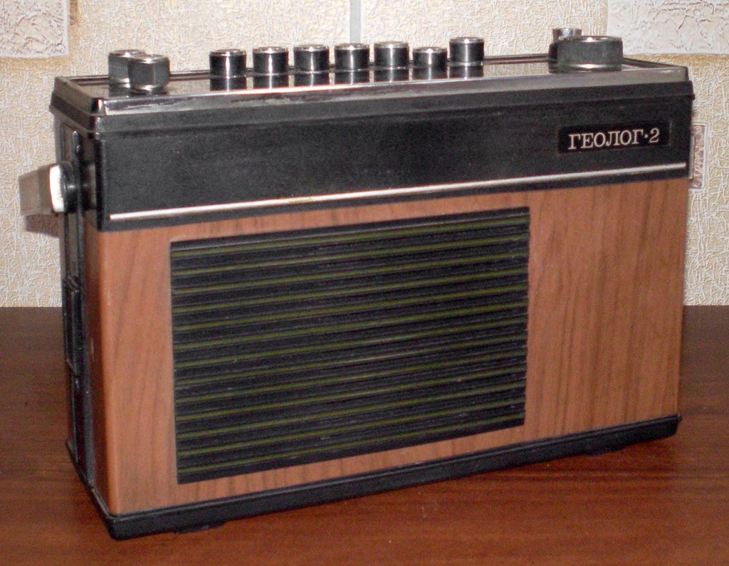 Портативный транзисторный радиоприемник *Геолог-2* с 1972 года выпускал Днепропетровский радиозавод. Радиоприёмник выполнен на базе радиоприёмника *Геолог*, отличаясь использованием трёх микросхем серии *К237*. Они работают в преобразователе частоты, гетеродине, УПЧ, детекторе и предварительном усилителе НЧ. Для обеспечения высокой избирательности по соседнему каналу пьезокерамический фильтр, использовавшийся в модели *Геолог*, заменен четырехконтурным ФСС. Для подъема АЧХ в области низших звуковых частот на входе УНЧ включен Т-образный фильтр нижних частот. Как и в приёмнике *Геолог*, здесь установлен громкоговоритель 1ГД-39. Номинальная выходная мощность 0.5 Вт. Питается приёмник от 6 элементов 373. Размеры модели 290х190х90 мм, его масса 3 кг.