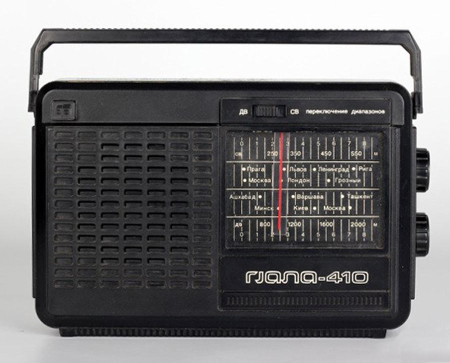 Портативный радиоприёмник *Гиала-410* предположительно с 1980 года выпускал *Грозненский радиотехнический завод*. Приёмник рассчитан на приём радиостанций в диапазонах ДВ (2000...740,7 м) и (СВ 571,4...186,9 м) волн. Приём ведется на встроенную магнитную антенну. В нём имеются гнёзда для подключения наружной антенны, заземления, телефонов, внешнего питания. Питание от 6-ти элементов 343, 2-х батарей 3336Л или внешнего источника. Чувствительность с магнитной антенной в диапазонах: ДВ 2, СВ 1 мВ/м. Селективность 26 дБ. Номинальная выходная мощность 0,4, максимальная 0,7 Вт. Номинальный диапазон воспроизводимых частот 200...3550 Гц. Габариты приёмника 265х170х78 мм. Его масса - 1,4 кг. Цена - 30 рублей. В 1986 года радиоприёмник был переведён в 3-й класс и выпускался под наименованием *Гиала-310*.