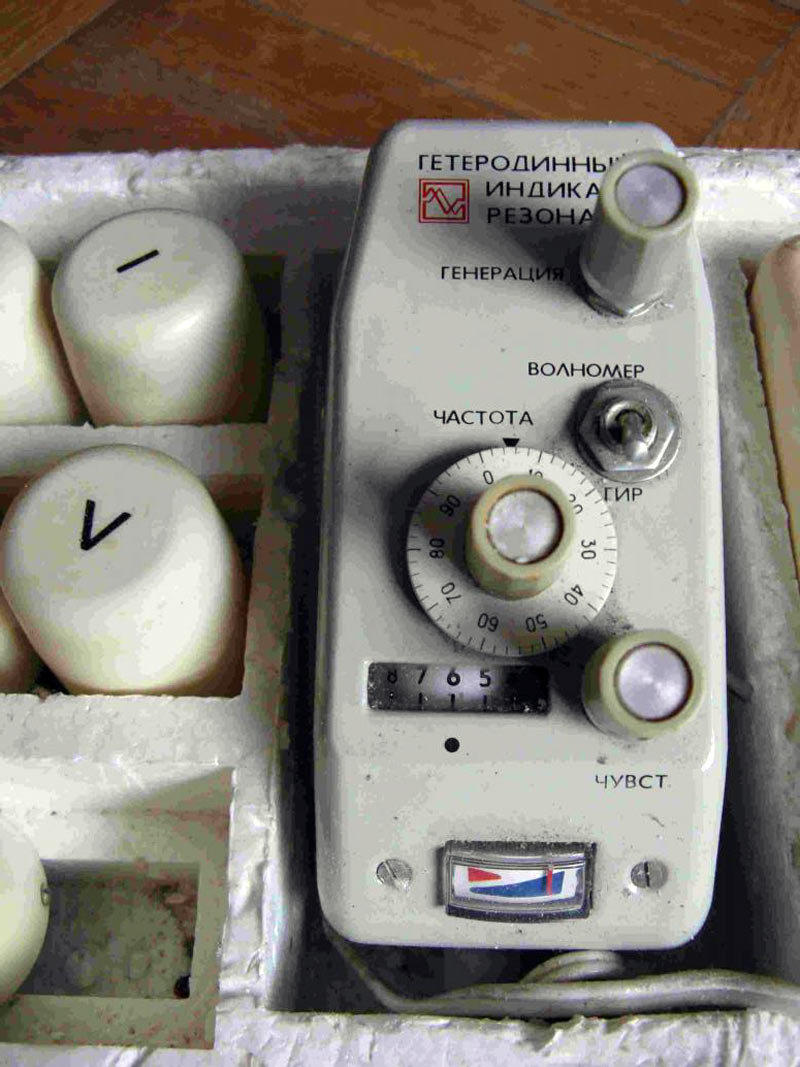 Гетеродинный индикатор резонанса *ГИР* с 1976 года выпускал Курский завод *Маяк*. *ГИР* предназначен для настройки различной радиотехнической аппаратуры, такой как радиоприёмники, радиопередатчики, телевизоры, антенны и других ВЧ устройств). *ГИР* обеспечивает диапазон генерации частот до 80 МГц, перекрываемый сменными катушками и следующие фиксированные частоты: 161; 249; 386; 465; 562; 912; 1480 кГц, обеспечиваемые семью сменными катушками. Плавная настройка на резонансную частоту настраиваемого контура производится вращением ручки со шкалой и по показаниям стрелочного индикатора. Погрешность установки частоты +-3%. Напряжение на выходе не менее 0,1 В. Питание от сети через блок питания. Потребляемая мощность 10 Вт. Габариты прибора 145х67х70мм. Габариты блока питания 145х45х48 мм.