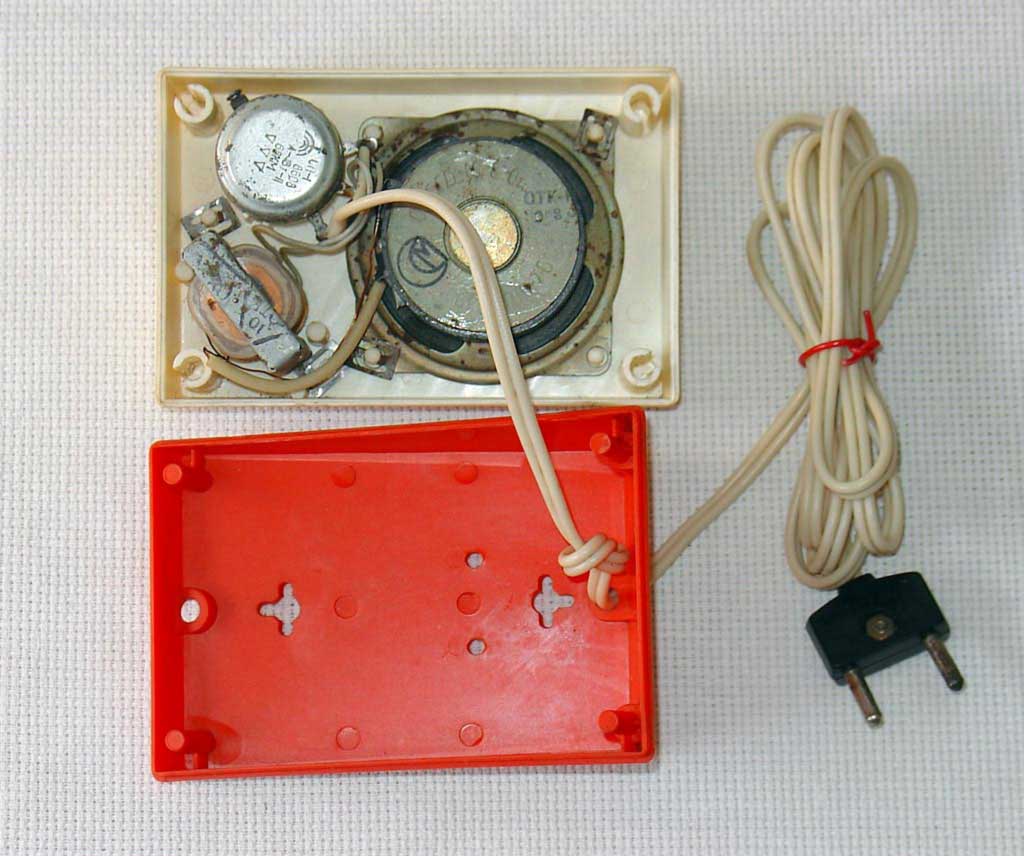Абонентский громкоговоритель (Игрушка-конструктор) "Громкоговоритель" с I-кв 1986 года выпускал Нальчикский завод полупроводниковых приборов. Конструктор предназначен для развития трудовых и радиолюбительских навыков у детей в возрасте 12...15 лет и помогает развитию технического творчества и расширению кругозора. От себя добавлю, что не очень то улучшались радиолюбительские навыки у школьника который собирал подобную конструкцию, разве что он продвигался в познаниях несколько дальше лампочки с батарейкой к карманному фонарю. Но всё таки следует отдать должное заводу, как он мог уложиться в отпускную цену громкоговорителя 3 рубля 85 копеек, когда в розницу элементы стоили 10 руб? Добавлю так же что такие конструкторы продавались в торговой сети почему то и в собранном виде по цене 7 рублей, (стоял штампик) но с руководством конструктора игрушки. Конструктор выпускался в нескольких вариантах конструктивного и внешнего оформления.