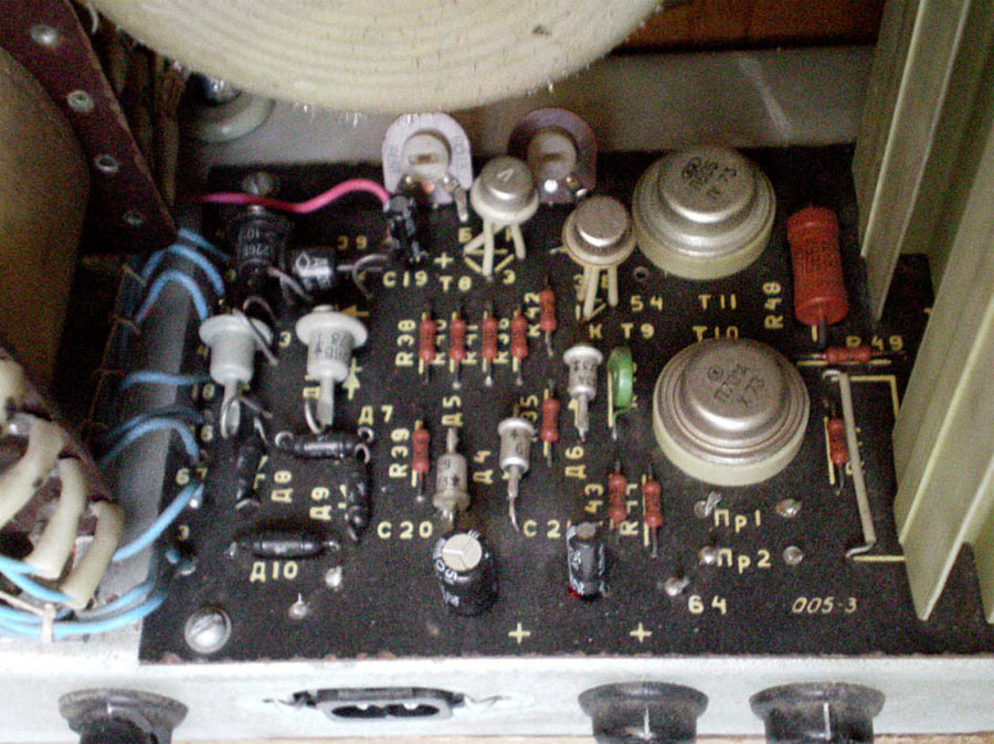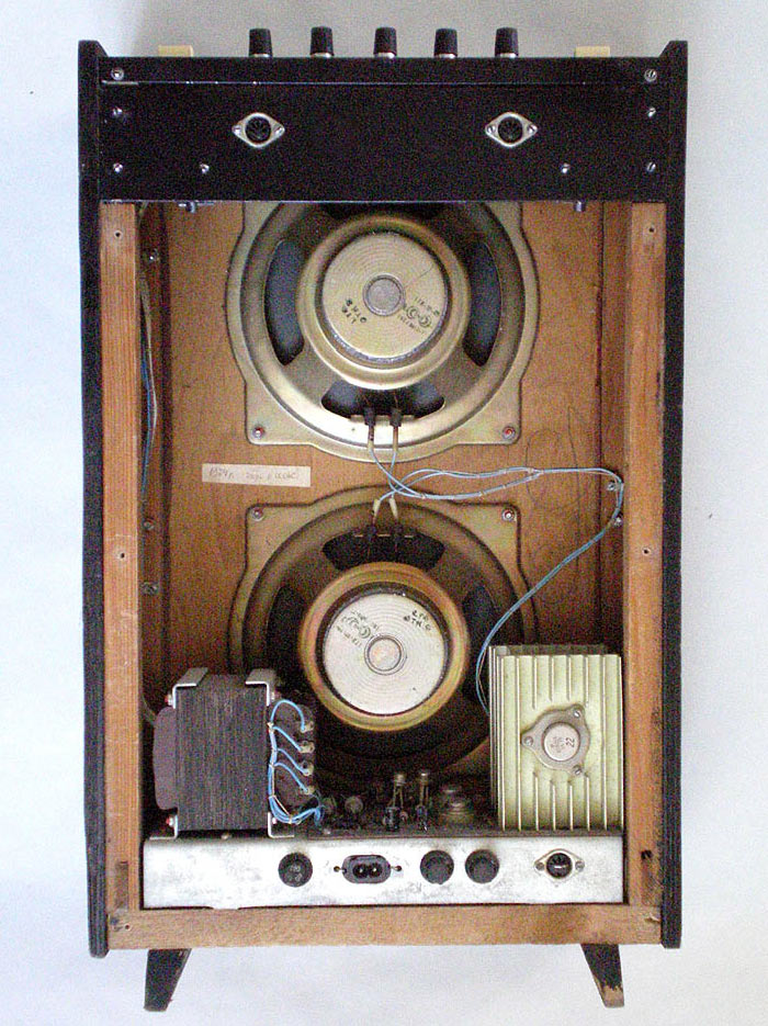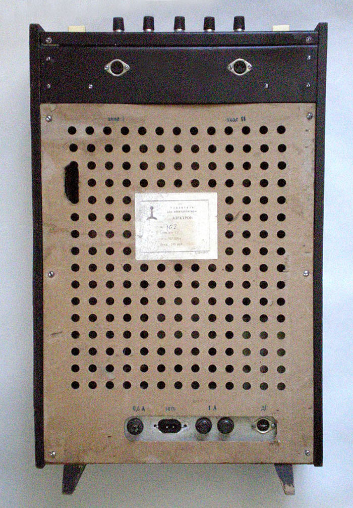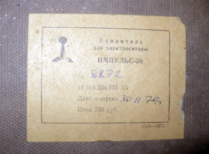 Усилители для электрогитары *Электрон* и *Импульс-20* с 1973 и 1978 года соответственно выпускал Херсонский завод п/п. Усилитель *Импульс-20* отличается схемой. ТХ по усилителям пока нет. Вот описание усилителя *Электрон* с сайта http://oecc.ru/kombo/elektron-73.php: Данный экземпляр, выпущенный в 1974 году, имеет заводской номер 402, из чего можно сделать косвенный вывод, что производство данной модели не носило массовый характер. Конструкция усилителя *Электрон* проста: на деревянную раму, снабжённую парой деревянных ножек и двумя фанерованными «мебельными» щёчками, смонтированы блок регулировок и, собственно, шасси усилительной части. На лицевой стороне, затянутой жёлтой радиотканью, установлены два широкополосных динамика 1ГД-35 и размещён шильдик с логотипом. На верхней панели, покрытой чёрной эмалью находятся: кнопка включения питания с индикатором, кнопка включения амплитудного вибрато, кнопка ВЧ, являющаяся аналогом современного «Presence», регуляторы громкости, фильтров ВЧ и НЧ, регуляторы управления частотой и глубиной вибрато. На задней панели установлены два гнезда СГ-5, соответствующие современным входам «Low» и «High». В нижней части комбика находится плата, на которой смонтированы переключатель напряжений (110/127/220), сетевое гнездо, два предохранителя по 1А и гнездо СГ-5 для подключения дополнительного громкоговорителя. Габариты ЭЛЕКТРОНА 54х33х15 см, масса 9 кг. Для удобства переноски устройство снабжено подпружиненной выдвижной ручкой в верхней части. Стоило это чудо 150 полновесных советских рублей, т.е., несколько выше средней месячной зарплаты инженера. С точки зрения эксплуатации комбик вызывает противоречивые чувства. С одной стороны, ЭЛЕКТРОН обладает своим совершенно уникальным голосом, найти аналоги которому среди известных брендов, типа FENDER, VOX, MARSHALL и т.д., не представляется возможным. И дело вовсе не в том, что это «совок» и «колхоз», а в том, что просто структура звука ни на что не похожа – притом, что это «тот самый звук», звук 60-х, безотносительно к «государственной» привязке. С другой стороны, по современным меркам, ЭЛЕКТРОН, конечно, совершенно не подходит для исполнения альтернативы, хеви-метал или гранджа – его епархия сёрф, рокабилли, ритм-н-блюз и мод-рок. Не тяжелее. Но в данной категории он, безусловно, достойный боец. Мощности его достаточно, чтобы подзвучивать гитару на школьных вечерах, в небольших кафе и т.д. Для домашнего использования - сугубо в зависимости от отношений с соседями. Из недостатков можно отметить высокий уровень фона и то, что при увеличении глубины вибрато, сигнал генератора задающей частоты всё больше проникает в тракт воспроизведения так, что при полностью выкрученной ручке «Глубина» усилитель может использоваться для эмуляции звука летящего вертолёта.