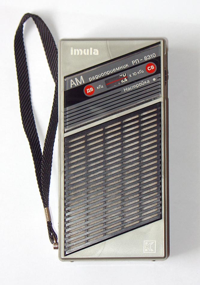 Портативный радиоприёмник *Имула РП-8310* с 1986 года выпускал Кандавский радиозавод. (Имула - левый приток реки Абава, Латвия.) Радиоприёмник представляет собой малогабаритный СВ, ДВ супергетеродин, собранный на интегральной микросхеме К174ХА10. Конструкция и схема модели кроме оформления аналогична приёмнику этого же завода *Селга-309*. Приём производится на магнитную антенну, но есть возможность подключения и внешней антенны. Чувствительность на ДВ 2,5, СВ 1,3 мВ/м. Избирательность по соседнему каналу при расстройке на 9 кГц около 30 дБ. Диапазон воспроизводимых частот 450...4000 Гц. Номинальная выходная мощность 150 мВт. Питание 3 элемента 316. Габариты приёмника 74х150х36 мм, вес с питанием 340 г. Завод выпускал и экспортный приёмник с наименованием "Selga R-8310". Одновременно на Кубе выпускался этот же радиоприемник, но под именем Pionero. Одновременно с радиоприемником Имула, на этом же заводе "Радиотехника" выпускался радиоприемник Selga-309, который был построен точно по такой же схеме. В определенный момент начался дефицит микросхем К174ХА10 и на заводе была разработана транзисторная версия радиоприемника Selga -309Т (если не ошибаюсь в 1991 году, а индекс "Т" обозначает - Транзисторная). Характеристики транзисторной версии в точности повторяли версию на микросхеме.