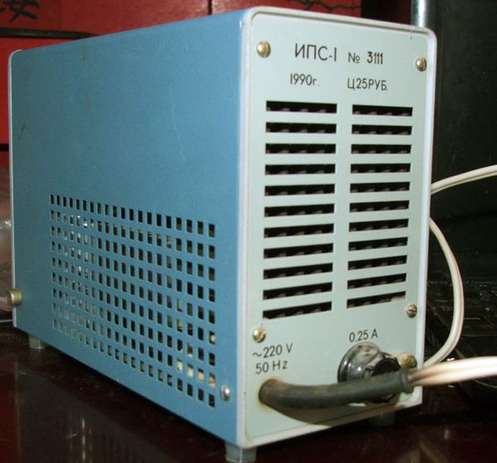 Источник питания стабилизированный **ИПС-1** выпускался с I-кв 1990 года Минским заводом **Калибр**. Источник питания стабилизированный обеспечивает поддержание выходного напряжения питания в установленных пределах для электронной аппаратуры. Технические характеристики: Выходное напряжение, В - 3...15. Максимальный ток нагрузки, А - 1. Ток срабатывания защиты, А - 1,1...1,4. Напряжение пульсации, мВ - 20. Нестабильность выходного напряжения: при изменении напряжения сети питания на ±10% от номинального значения 220 В, не более, % - ±1. При изменении тока нагрузки от 1 А до 0, В, не более - 0,3. Питание от сети переменного тока, В/Гц - 220/50. Потребляемая мощность, В*А - 60. Габаритные размеры ИПС-1, мм 250x87x140. Масса, не более, кг 2,3.